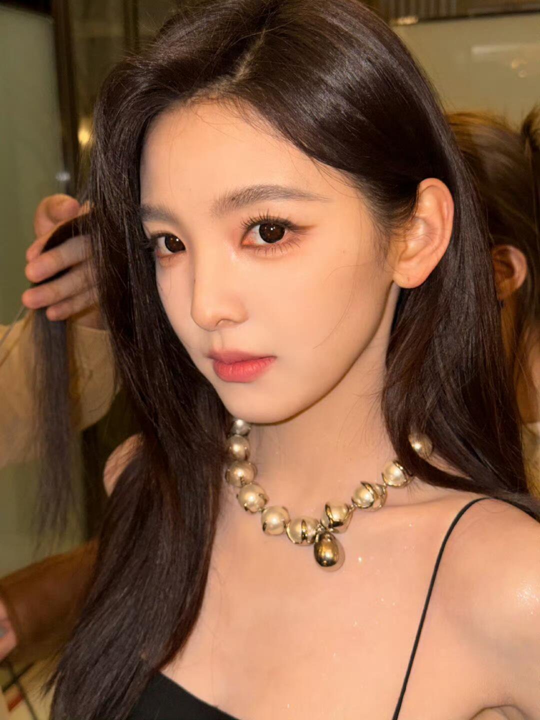 章若楠纪梵希活动造型,黑长直搭配黑裙太美啦!