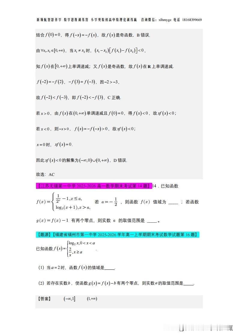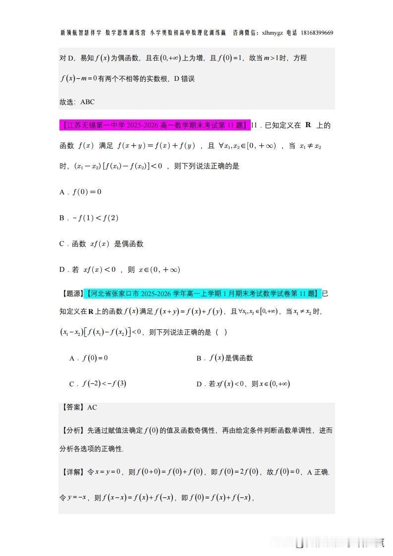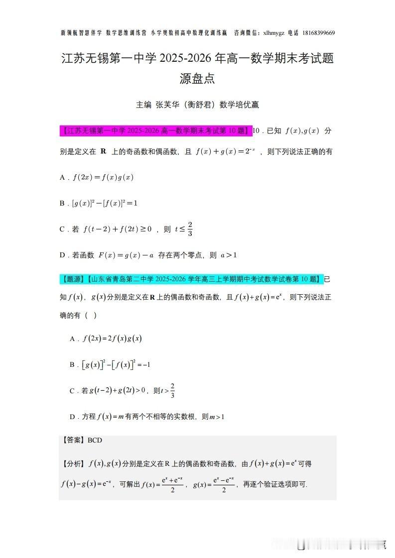 无锡一中高一数学期末考试考完了,盘点一下命题题源,其中第11题和第19题来自于河北张家口市高一数学期末考试试题进行的改编,第10题来自安徽师大11月期中第11题,如果更确切的说是来自山东青岛第二中学高三数学期中试题的改编! 所以平时张老师的一些百强名校题还是值得一做的。
