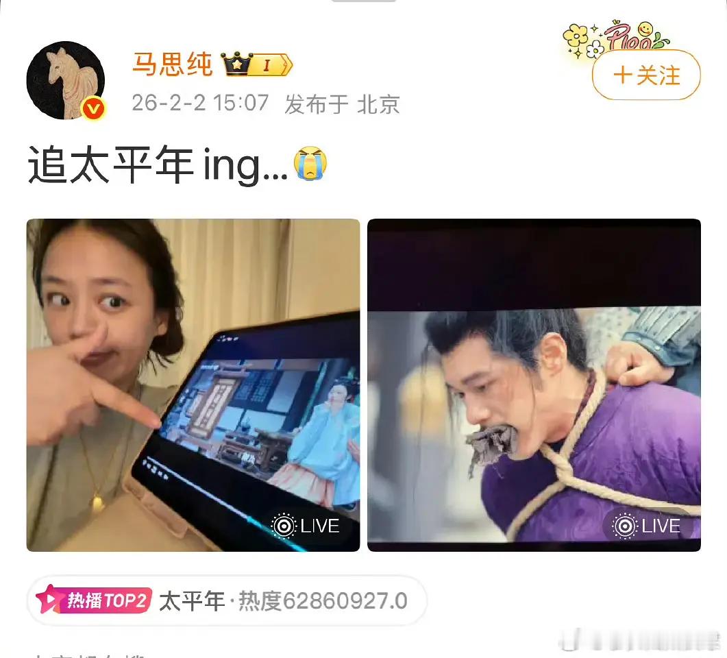 马思纯因为发博在追太平年 被杨紫粉丝吐槽了 称她对得起生命树吗
