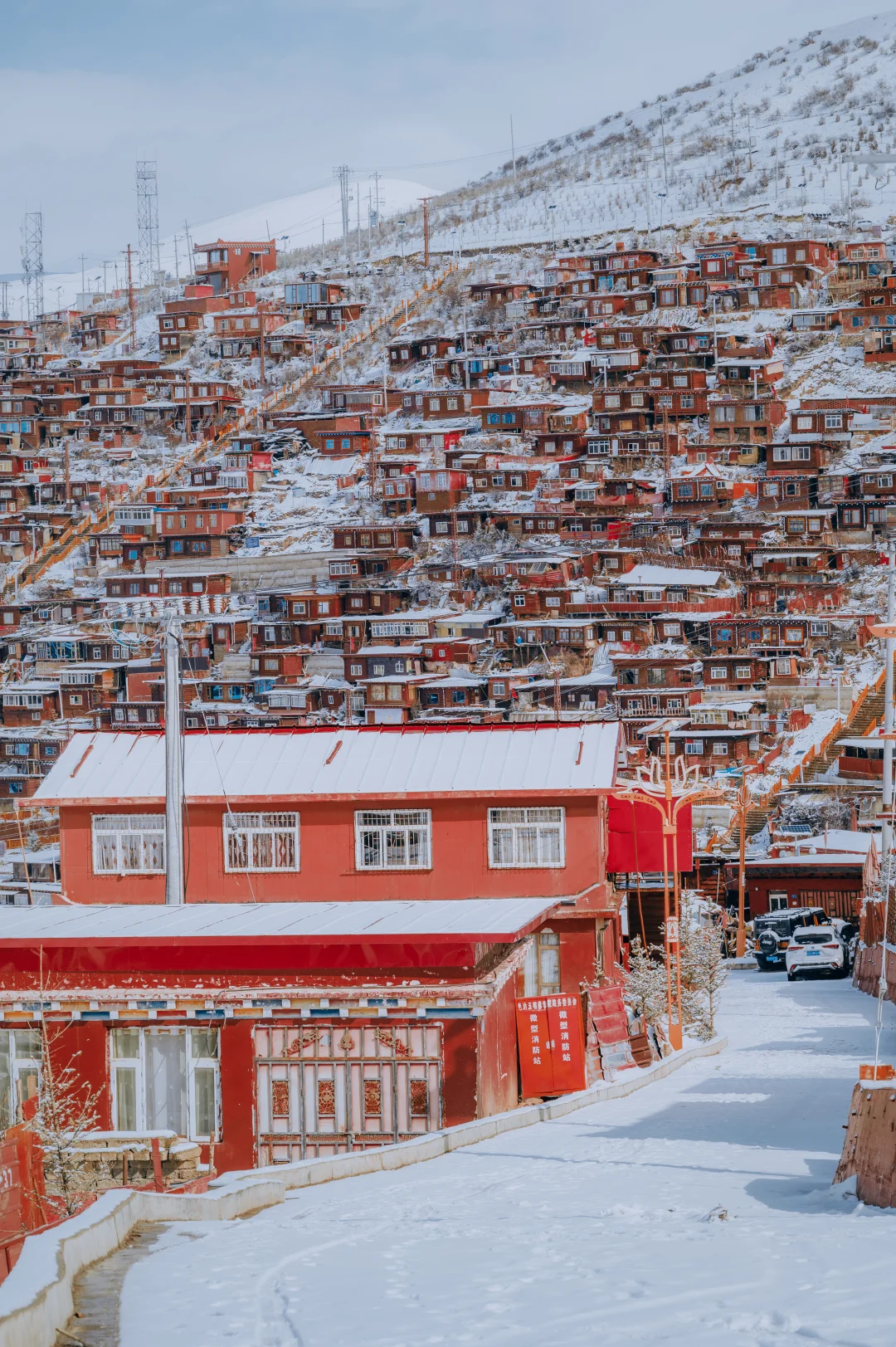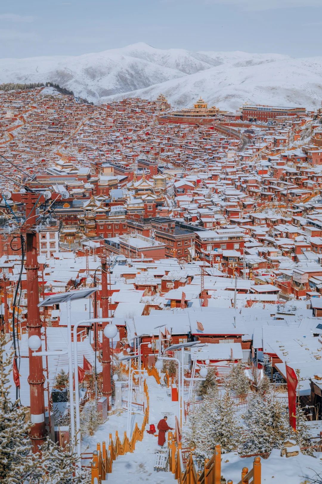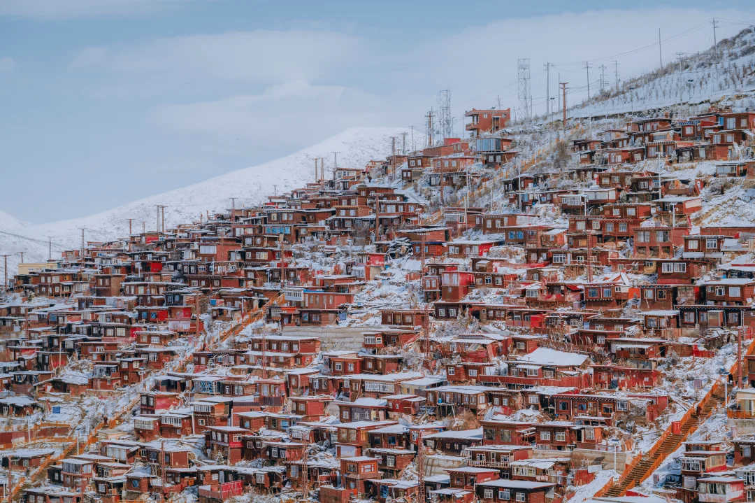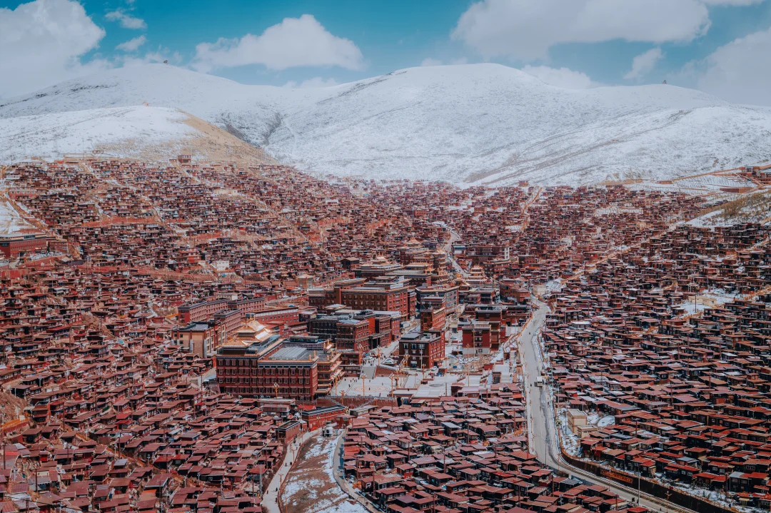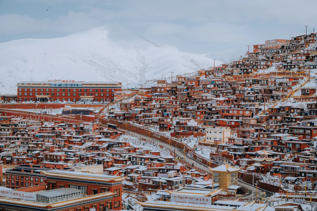 2,有个诀窍是,如果冬天遇不到色达下雪,那就春天来,川西春季水汽充沛,雪量更多,我这组照片实际上是拍于3月底。因为色达海拔较高,到4月初都能积起雪,甚至在5月中也能下雪,只不过那个时候不会有我照片中那么厚的效果了。