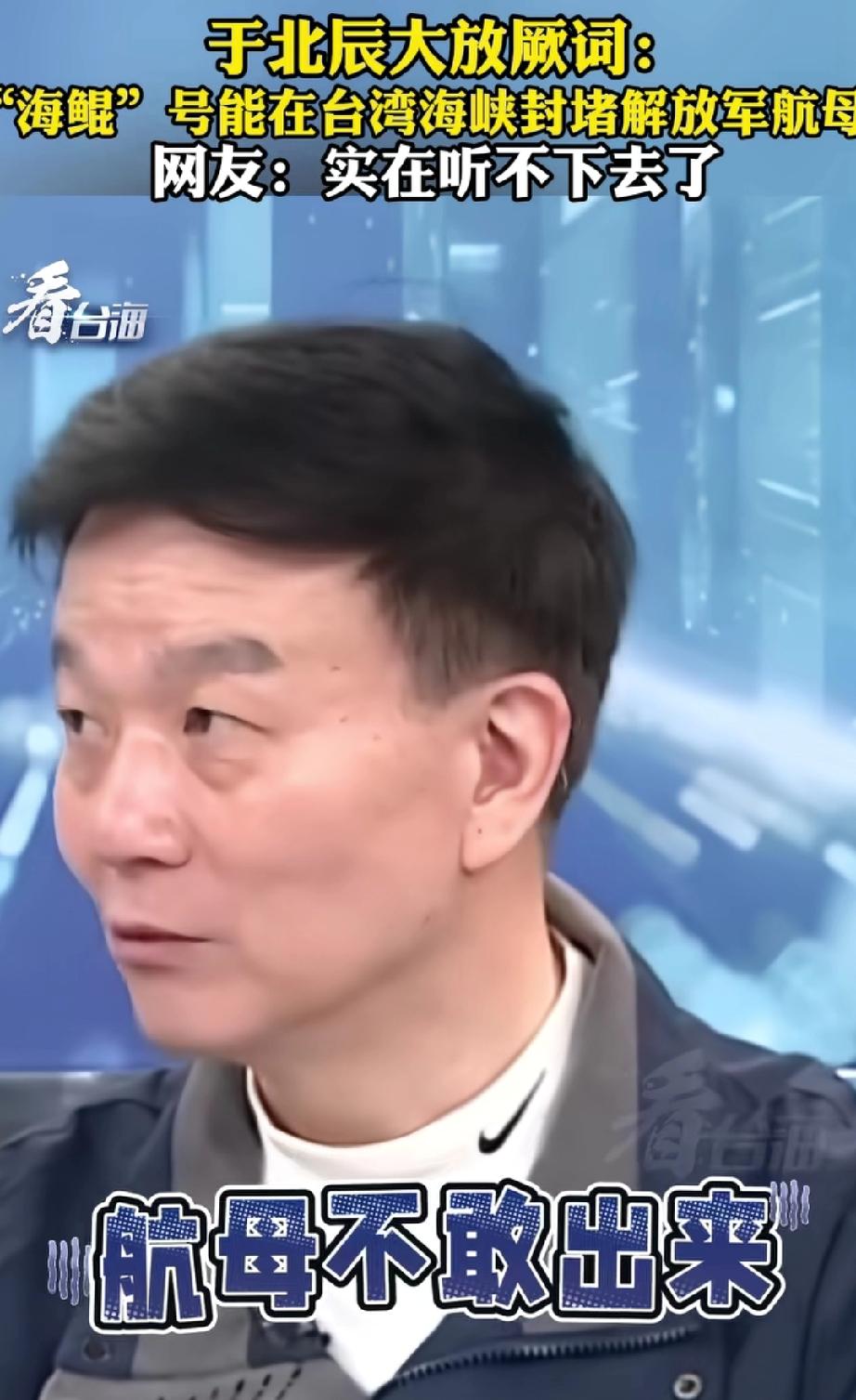 于将军发挥一如既往的“稳定”。 于北辰大放厥词:“海鲲”号能在台湾海峡封堵解放军航母。只要堵住台湾海峡南北,中国的航母不敢出来。 于大“将军”把台湾海峡的海水喝干吧!没水什么船都出不来。虽然我不懂军事,但他说出来的话我听了,感觉我的智商受到了暴击。 网友说:我已经不生他的气了,只是实在听不下去了。 总之,我看到于北辰出来,一天心情美美哒。