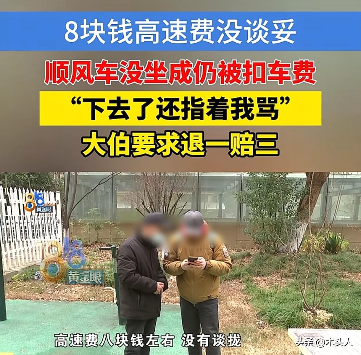 浙江杭州,大爷叫了一辆顺风车回小区,上车后司机说要走高速,让大爷再出8元高速费,可大爷却说可以不走高速,如果一定要走,那就费用分摊。双方没谈拢,司机把大爷夫妻赶下了车,大爷和妻子只能坐公交和地铁回家,回家后却发现顺风车平台扣了他们38.2元车费,找到平台退还,可结果让他们失望。 1月26日中午12点55分,孟大爷和老伴叫了一辆顺风车准备回自己居住的小区。 孟大爷夫妻上车后,司机跟他们说要走高速,让他们再出8元过路费,孟大爷表示可以不走高速,走高架。 可司机坚持要走高速,孟大爷提出那就双方自行协商,费用平摊。 司机却生气了,说总共就这点钱,没必要平摊。 双方没谈拢,司机竟直接让孟大爷夫妻下车,还恶语相向,骂他们年纪这么大了,还s出去干嘛? 下车后,孟大爷在手机上一时找不到取消订单的页面,大冬天的,夫妻俩又气又急,只能先坐公交,再转地铁,一路折腾才回到家。 他们原本以为这糟心事就此结束了,没想到回家后孟大爷查看手机,却发现顺风车平台居然扣了他38.2元的车费。 孟大爷气坏了:自己都没坐到车,这钱扣得毫无道理。 他让自己女儿把订单截图、扣款信息都发给了平台客服,说自己没坐车,平台应该把车费退还给自己。 可平台却说孟大爷提交的证据不充分,无法退还车费,但是他们可以给孟大爷30元优惠券。 这让孟大爷接受不了,自己38.2元的车费都被扣走了,要这30元优惠券有什么用呢? 孟大爷找来记者跟平台沟通,提出了两个要求:一是取消之前那位司机的营业资格,他的理由是司机骂人,如果需要乘客来承担过路费,司机可以好好沟通的。 并且在他们下车后,司机没有取消订单,有故意扣钱的嫌疑。 二是平台扣掉的38.2元的车费,最起码要退一赔三。 记者联系客服,询问对方:乘客跟司机没有谈拢,下车后能取消订单吗? 客服表示:如果订单正在进行中,需要乘客拨打人工客服电话处理,司机那边也是需要联系平台处理的。 最终,平台退还了孟大爷38.2元车费,并表示会继续调查具体情况。 有人说孟大爷连8元钱的过路费都要省,难怪司机不愿意拉他,顺风车又不是专车,路费本来就低的。 但是也有人觉得大爷的做法没有毛病,高速过路费本来就是双方互相协商的,如果谈不拢,司机好好跟大爷说,让大爷下车,取消订单就好了,怎么还骂人家了。 乘客打顺风车,上车后,因高速费谈不拢,可以取消订单吗? 《民法典》第809条规定:运输合同是承运人将旅客或者货物从起运地点运输到约定地点,旅客、托运人或者收货人支付票款或者运输费用的合同。 据多数顺风车平台的规定,若乘客在出发前,与司机就高速费未达成一致,可取消订单且无需承担责任。 若乘客备注“不承担高速费”,协商未果后取消订单,平台会判定司机违约,乘客无责。 若乘客在行程中取消订单,可能需要支付违约金或补偿司机空驶费用。 孟大爷夫妻上车后,和司机就高速费的问题发生分歧,双方协商无果后,可以取消订单。 乘客与顺风车平台形成运输服务合同关系,平台有义务按约定将乘客安全送达目的地,若乘客未实际乘车却被扣费,说明服务合同未履行,平台或司机构成违约。 孟大爷自己下车后,也没有联系平台取消订单,其自身也是存在疏忽的。 最终,平台把38.2元的路费退还给了孟大爷。 有网友说:坐顺风车本来就是图个方便,还因为这点钱闹成这样,真没必要。 对于此事,大家怎么看?