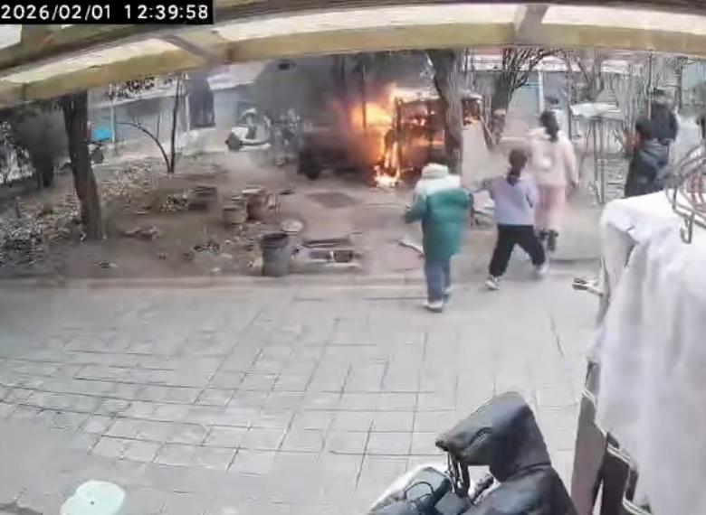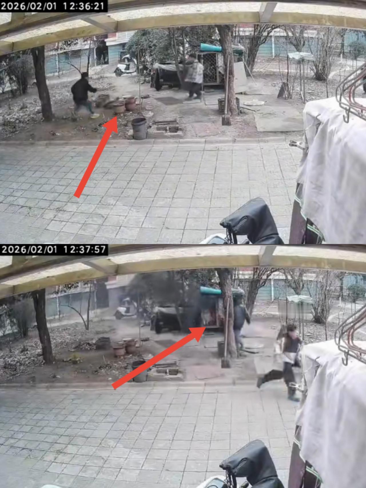 有点残忍!不建议看原监控视频! 2月2日,事发江苏连云港一小区,两男孩玩火故意扔