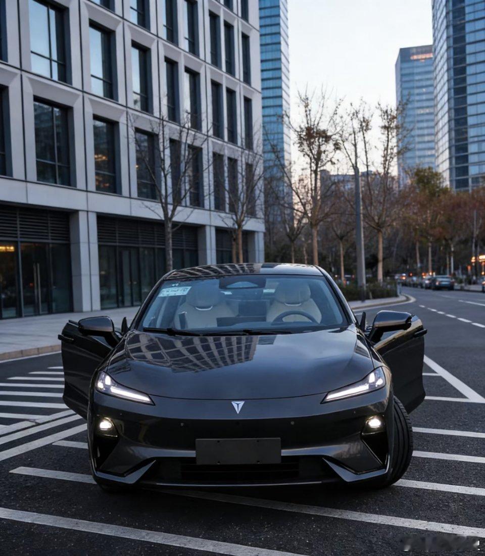 深蓝L07静立都市街头,鸥翼门舒展如翼,凌厉线条切割着暮色,冷峻车身与摩天楼群相映,满是未来感。大v聊车