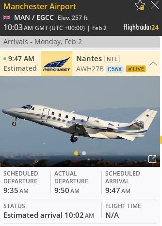 如果是早上的航班,那么雅凯刚刚飞抵曼彻斯特