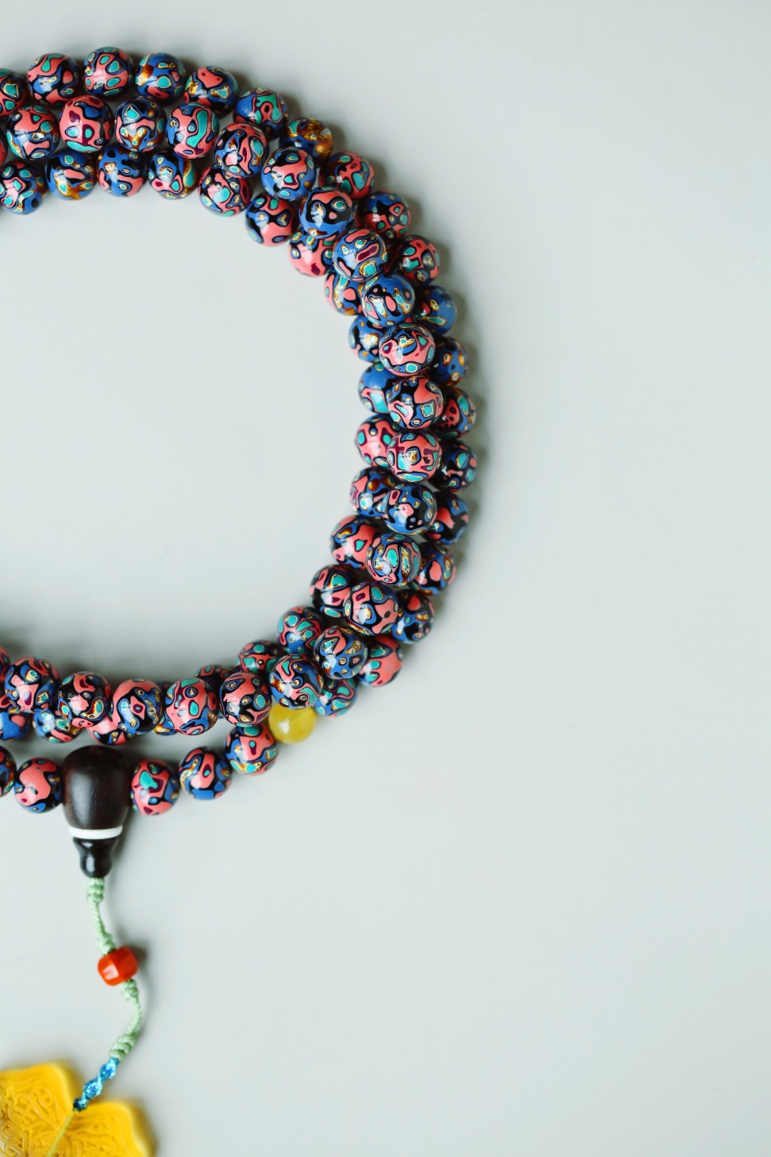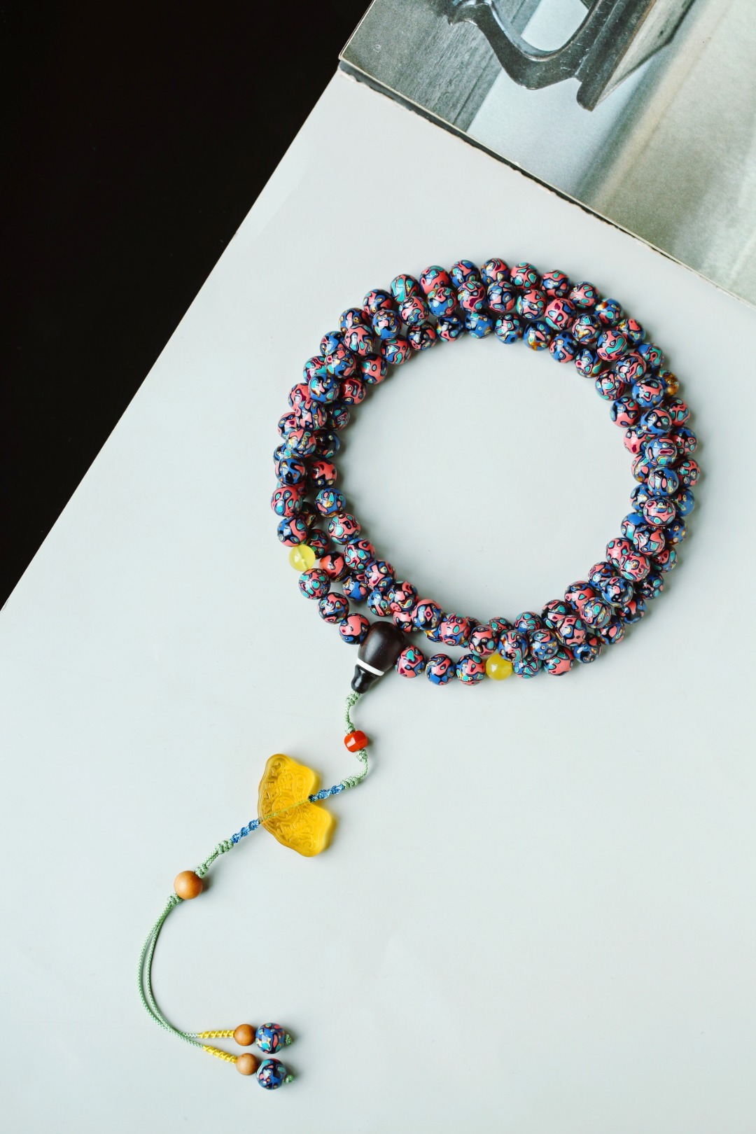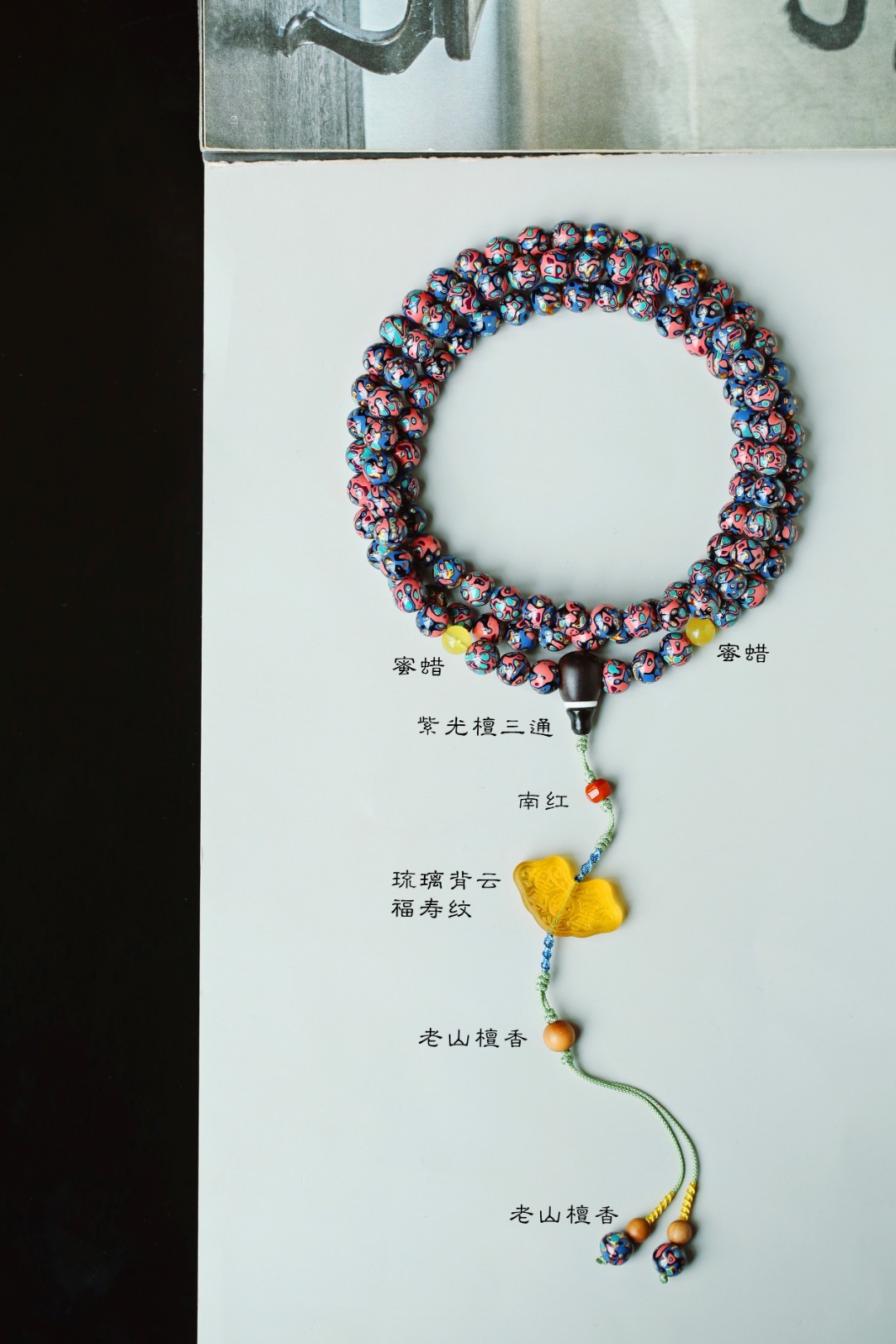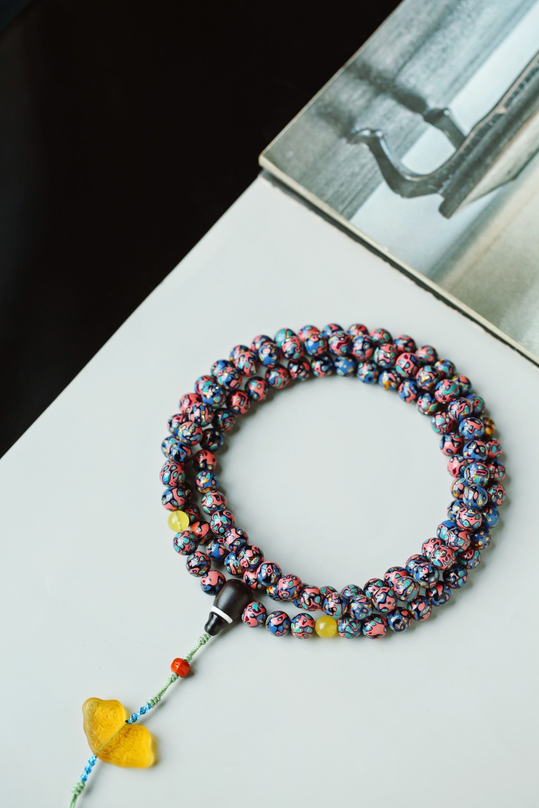 天然大漆,大美绚烂。层层髹漆,经久而不变色。肌理如水墨画,色彩鲜明,美不胜收。 大漆【苏梅】8mm108颗