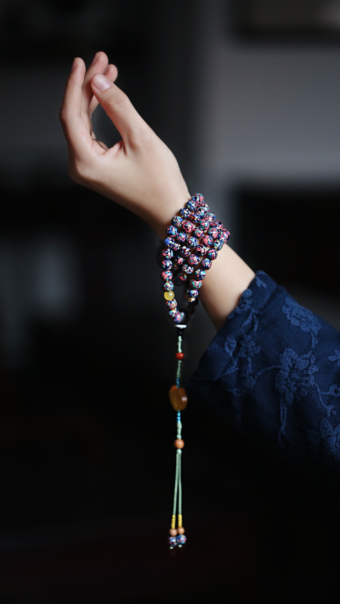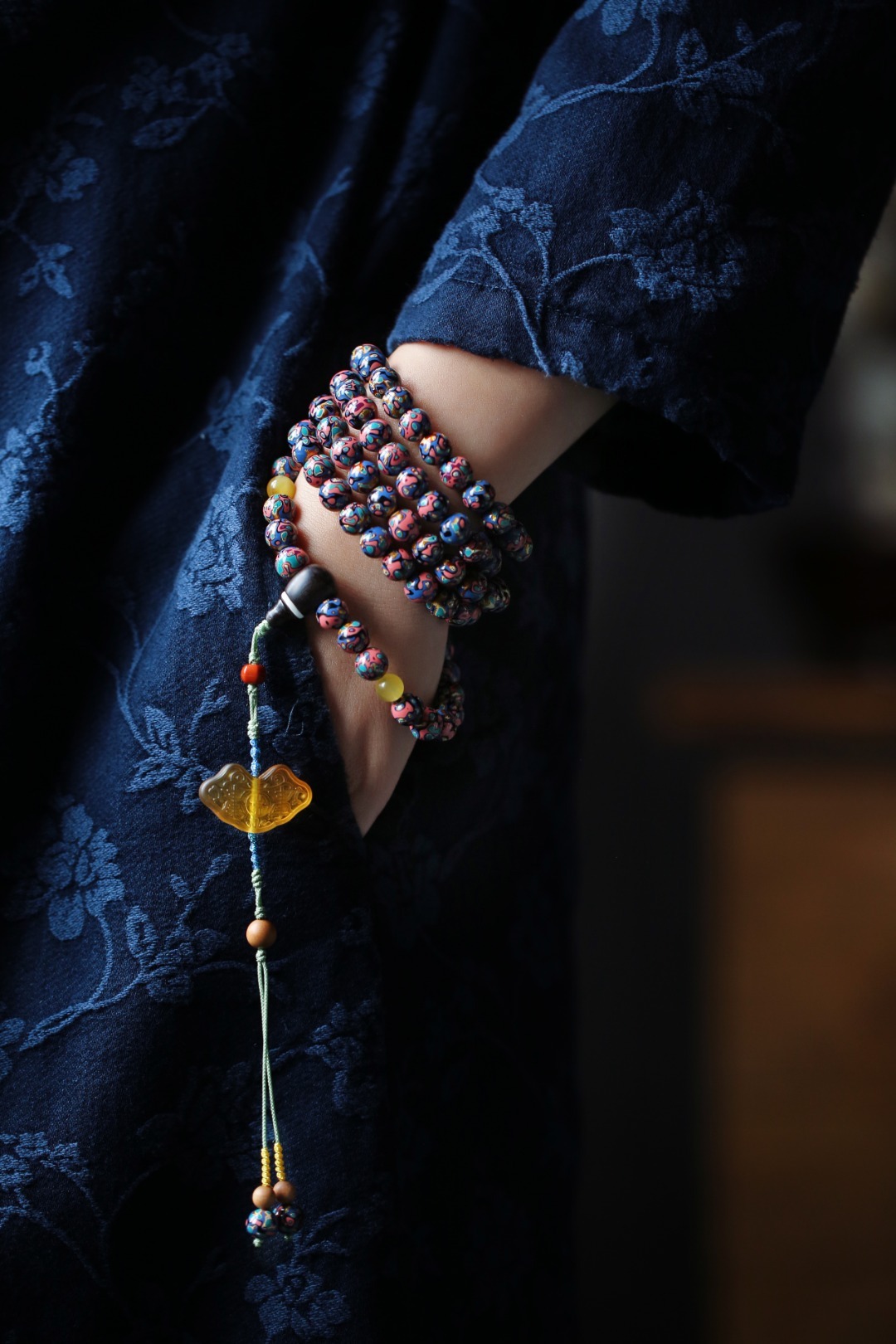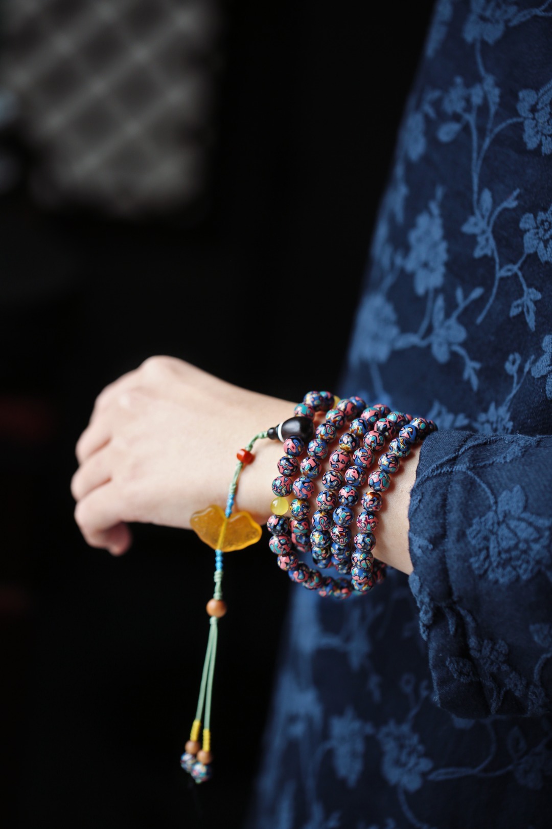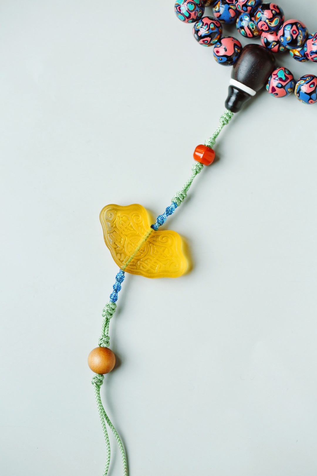 天然大漆,大美绚烂。层层髹漆,经久而不变色。肌理如水墨画,色彩鲜明,美不胜收。 大漆【苏梅】8mm108颗