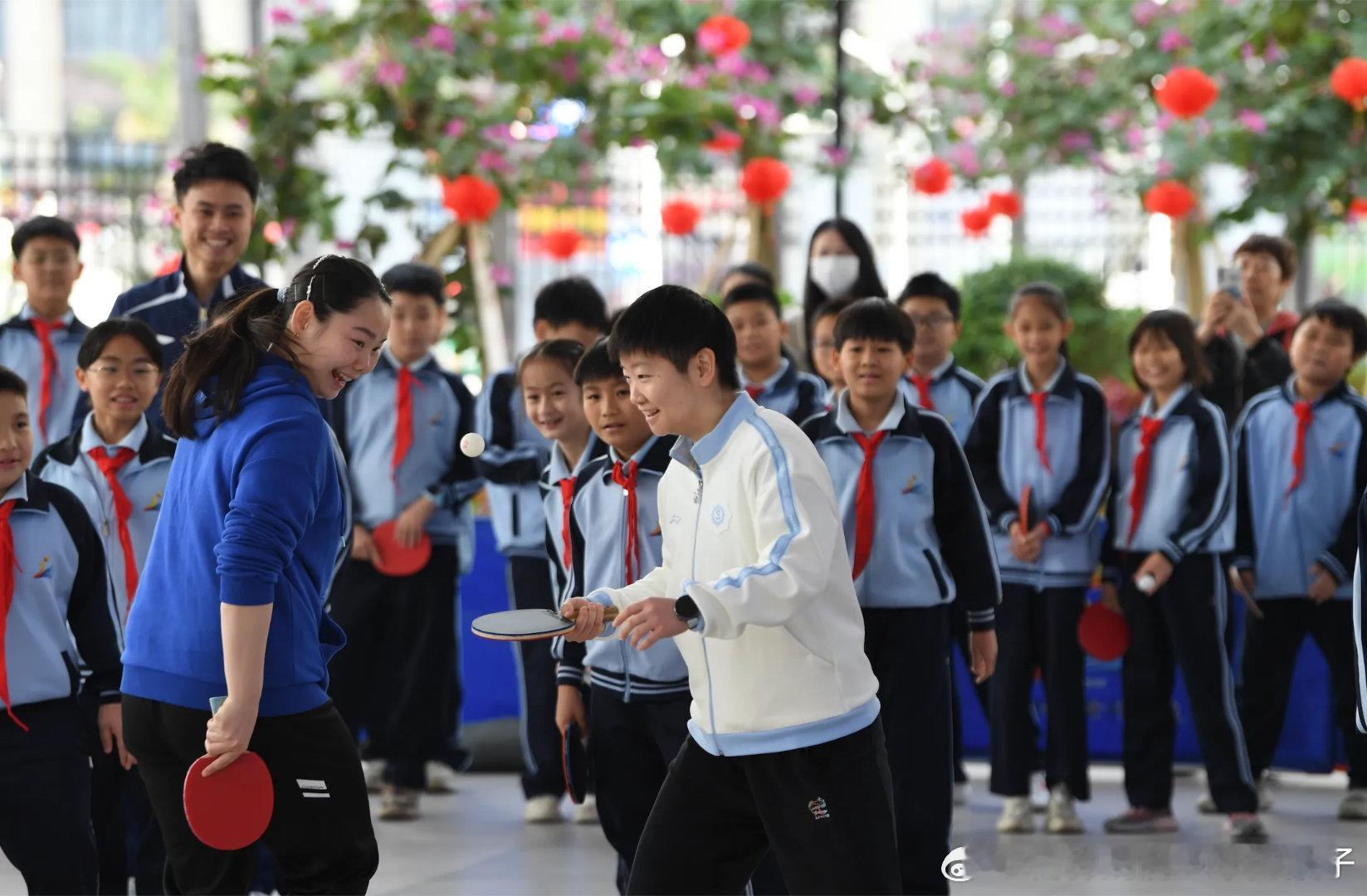 【乒乓世界】进校园、进公园,国手与海口市民学子切磋球技第35届国际乒联-亚乒联盟亚洲杯将于2月4日在海口五源河体育馆开赛。2月2日上午,中国乒协提前在椰城海口举办“国球进校园、国球进公园”公益推广活动,备战亚洲杯的国乒队员兵分三路走进校园和公园,与中小学生、市民游客近距离互动交流,以实际行动推广乒乓球运动,提前点燃亚洲杯赛事氛围。冠军领航点燃少年乒乓梦在中国人民大学附属中学海口实验学校,国乒队员王楚钦、陈俊菘、牛冠凯、王曼昱、陈熠、徐奕、王晓彤化身乒乓导师,开启一场别开生面的“启蒙校园行”。体育馆内,趣味十足的乒乓球接力活动率先开场,国乒队员带着学生们在游戏中感受乒乓运动的乐趣。随后进行的友谊赛中,王楚钦与该校一名高中生隔网对垒。王楚钦寄语孩子们,无论未来是否走上职业体育道路,乒乓球都能带来快乐与成长,鼓励大家勇敢逐梦。该校体卫艺处主任靳博表示,希望这场活动能让卓越、坚持、专注的体育精神,成为孩子们成长路上的鲜活指引。趣味互动传递拼搏力量海口市金宇学校的校园内同样热闹非凡,国乒队员向鹏、周启豪、徐瑛彬、袁励岑、孙颖莎、何卓佳、朱梓予、韩菲儿的到来,让全校师生欣喜不已。一场融合了接力传球、交流赛的趣味运动会火热开展,国乒队员与孩子们打成一片。海口市金宇学校校乒队队员林紫桐感慨,在电视上看国乒队员拼搏的样子,如今能近距离交流学习,收获满满。校乒队教练周日明介绍,近年来乒乓球运动在海口校园广泛普及,此次国乒队员的到来,为孩子们提供了宝贵的学习机会,激励着他们刻苦训练、奋勇争先。孙颖莎在接受采访时表示,看到孩子们对乒乓球的热爱十分开心,她鼓励喜欢体育的小朋友坚持梦想,强调打球不仅能强身健体,更能锤炼意志品质。谈及即将开赛的亚洲杯,孙颖莎直言会认真备战,全力以赴冲击好成绩,同时她也不忘夸赞海口的美食与美景,期待能有更多时间感受这座城市的魅力。银球跃动点亮椰城活力上午10时许,海瑞文化公园迎来了国乒队员林诗栋、陈垣宇、全开源、曾蓓勋、蒯曼、陈幸同、王艺迪。趣味乒乓互动环节创意十足,国乒队员手持巨型球拍和极具海南特色的迷你椰壳球拍与市民对战,依旧展现出专业的球技,引得观众阵阵叫好。本土选手林诗栋表示,此次以参赛选手的身份回到海口,感受到了家乡人民的热情,接下来会做好充分准备,认真对待每一场比赛。国乒队员所到之处,市民游客夹道欢迎,声声“中国队加油”汇聚成温暖的力量。此次“国球三进”公益活动,以乒乓球为纽带,连接起校园、社区与赛场,不仅推动了全民健身与体育文化的深度融合,更为即将到来的亚洲杯赛事营造出热烈的氛围。