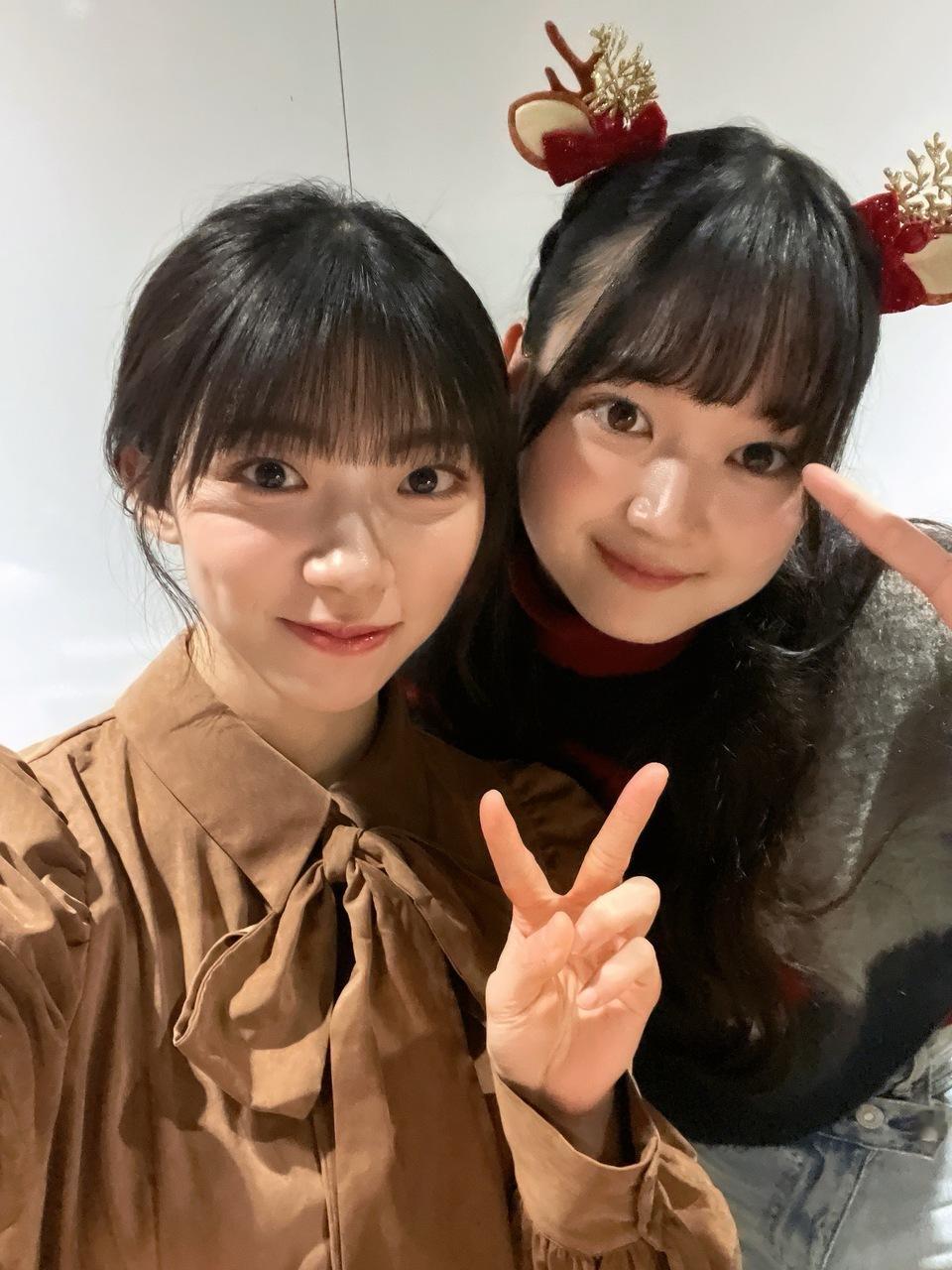 佐藤愛桜「幸阪さんと初のツーショット📷´- お顔が綺麗すぎていつも見とれています♡綺良さんとパシャリ🐈⬛綺良さんから「写真撮ろや〜」と誘ってくださりました!ありがとうございます♡」