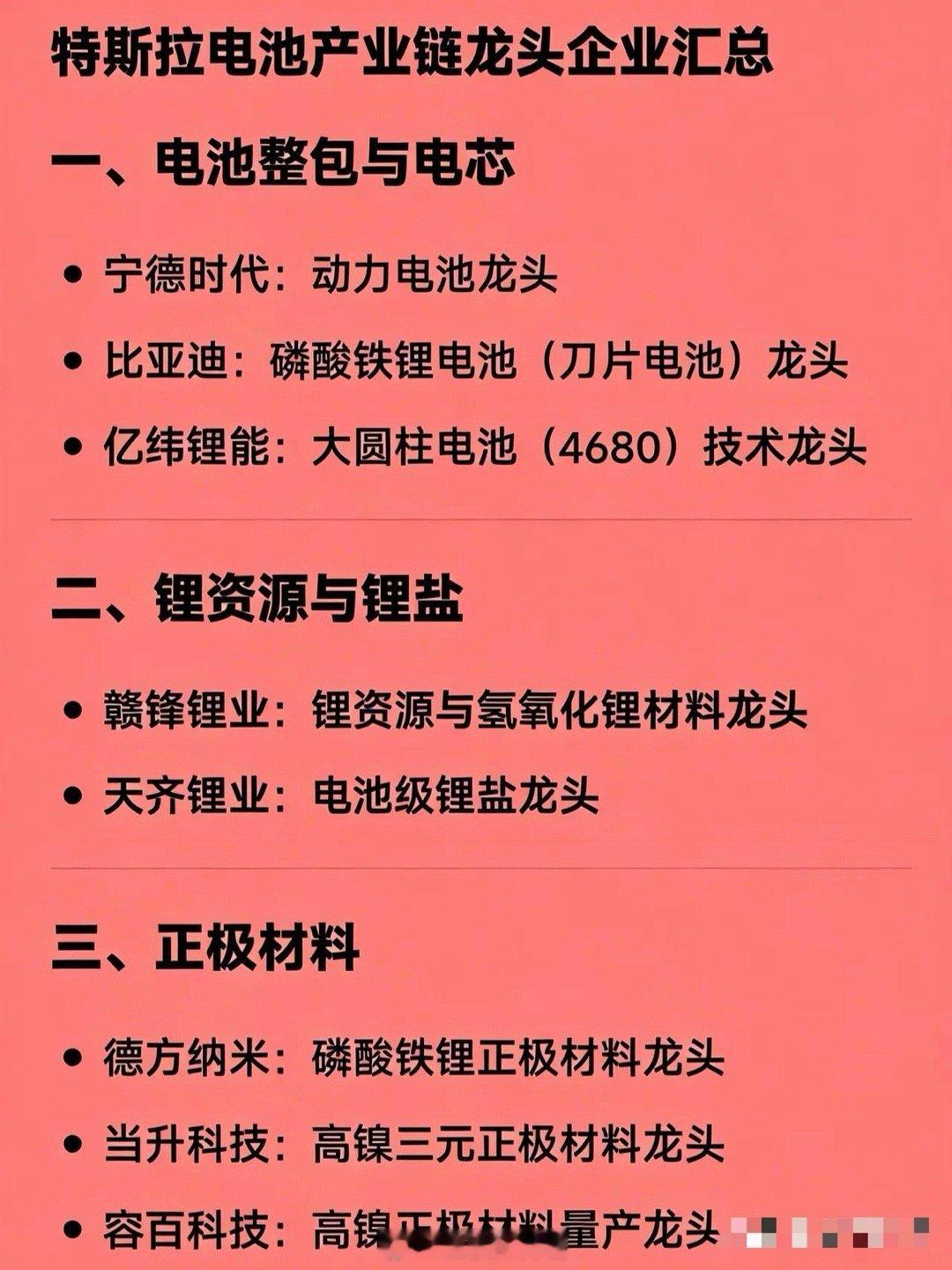 • 宁德时代:全球动力电池龙头,技术与产能领先,深度配套特斯拉等头部车企。