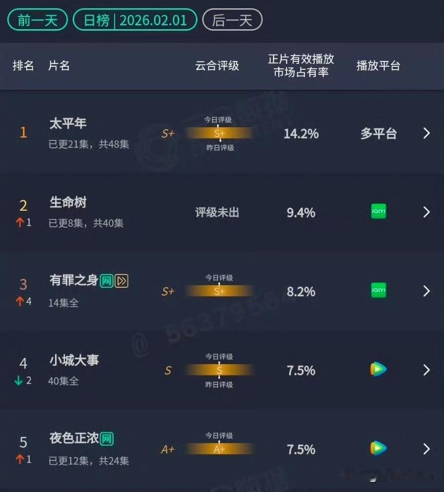 2月2日,《生命树》第三天云合9.4%,第四天热度8498,成绩不差总想它能更好,第一次对一部剧不知道该往哪方面再努力努力 该怎么才能让更多的路人观众去看这部剧,搞不懂片方的态度,正向宣传没几个,反向差评倒不少,对家都比片方用心,比片方积极,虽然这是一部任务剧,但也不能播出后就这么放在那里不管吧! 线上宣传效果不大,那就安排安排线下宣传啊,扫楼,综艺不能安排安排么???