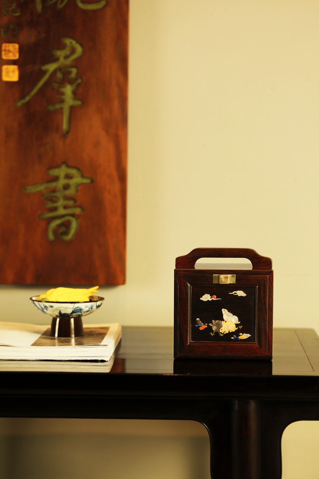 酸枝百宝嵌 | 三兔 提盒