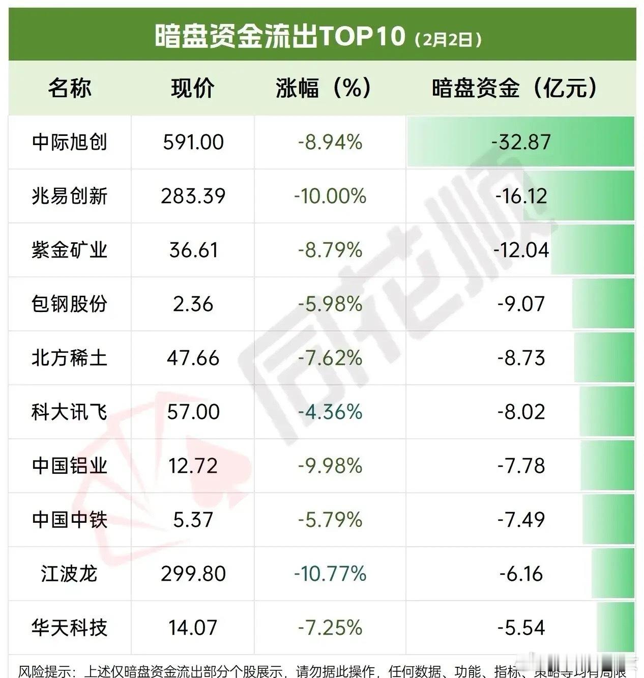 今日(2.2)暗盘资金净流入净流出top10梳理!