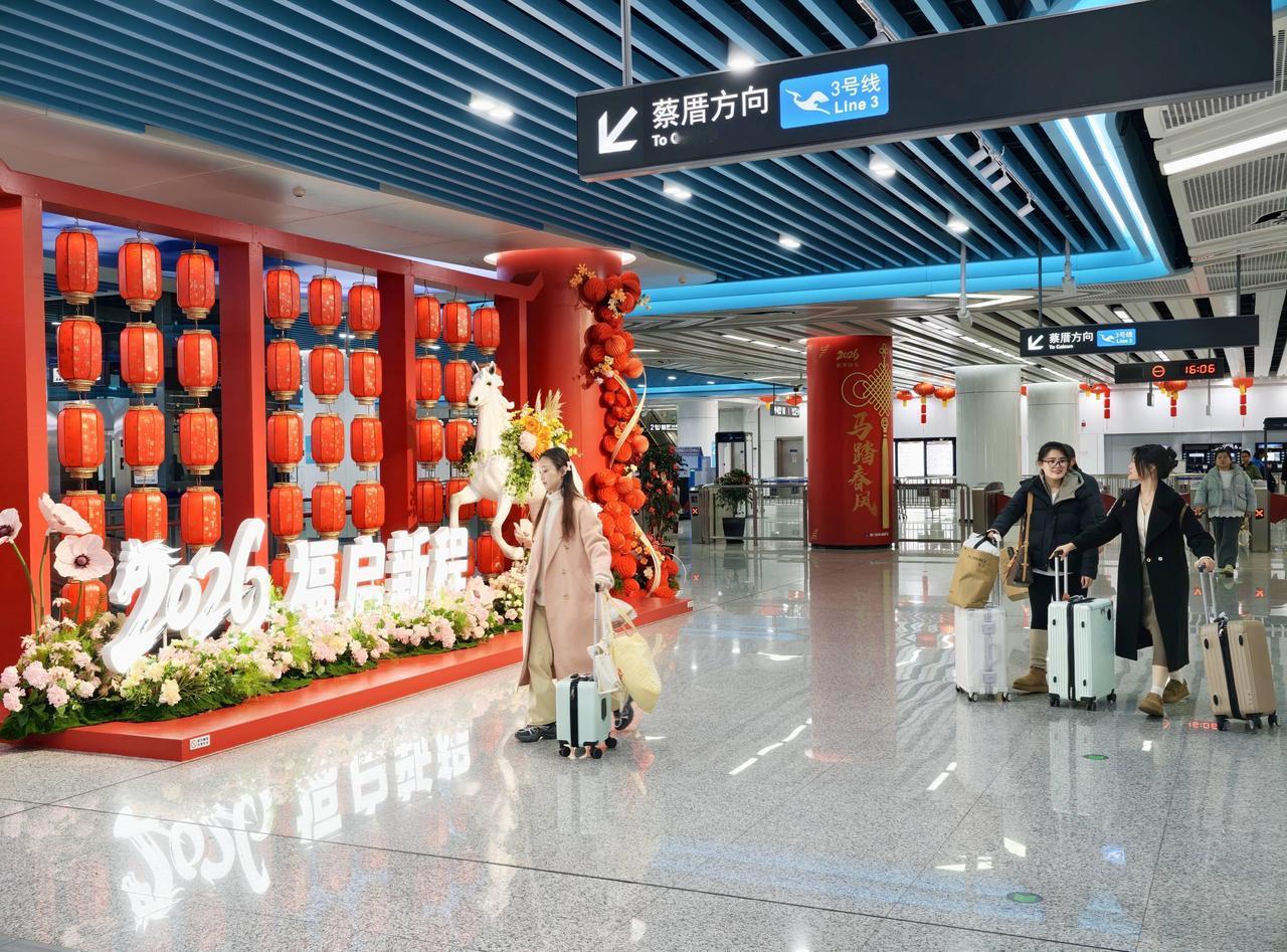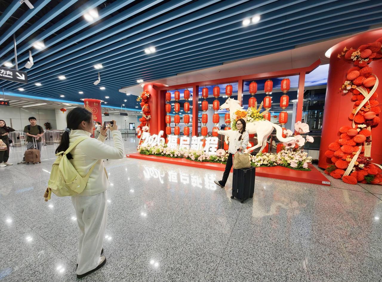 今天,记者一走进地铁3号线厦门火车站的站厅,映入眼帘的是大型美陈装置。灯笼阵列烘托年味,一匹白色“骏马”昂首奔腾,繁花拥簇。转角处,“福”字墙面格外醒目,竹椅竹凳与红砖古厝相映成趣。“这是我第一次来厦门旅游,感受到被欢迎的感觉。”广州游客陈永祺说,一走进地铁站,就被站厅中庭的“骏马”所吸引。“很红、很喜庆,很有过年的氛围。”她点赞道。 “厦门火车站、建业路站、中山公园站、吕厝站等重点车站均做了‘福马迎春’美陈布置设计。”厦门地铁运营公司客运一分公司镇海路站区副主任邱岳表示,马年春节到来之际,他们希望能营造一个“可触摸、可体验”的闽南文化空间,骏马寓意奋进向上,立体花艺寓意新的一年繁花似锦、一“鹭”生花。同时,“福”字主题墙融入闽南古厝、花砖等元素,勾勒出闽南人熟悉的春节记忆,也让游客直观感受到闽南文化的魅力。网页链接(本报记者 林钦圣)