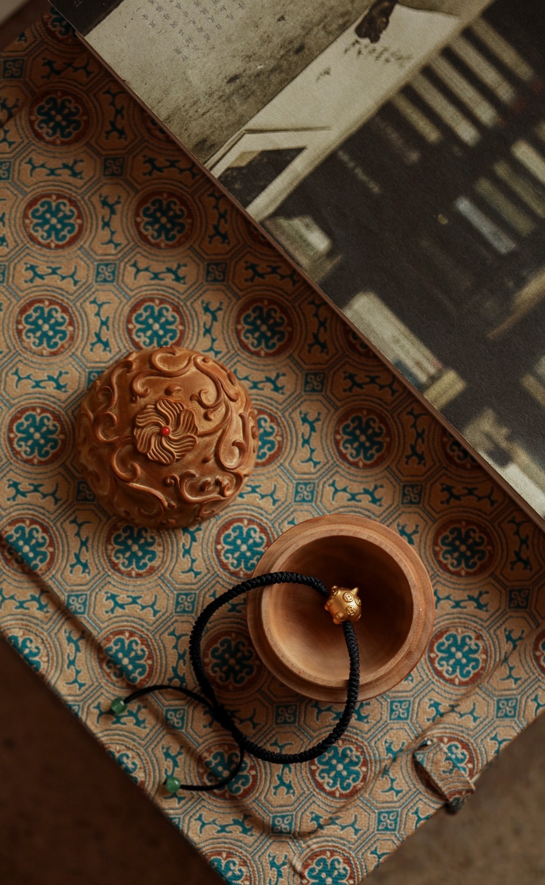 老山檀【缠枝莲纹】盖盒
