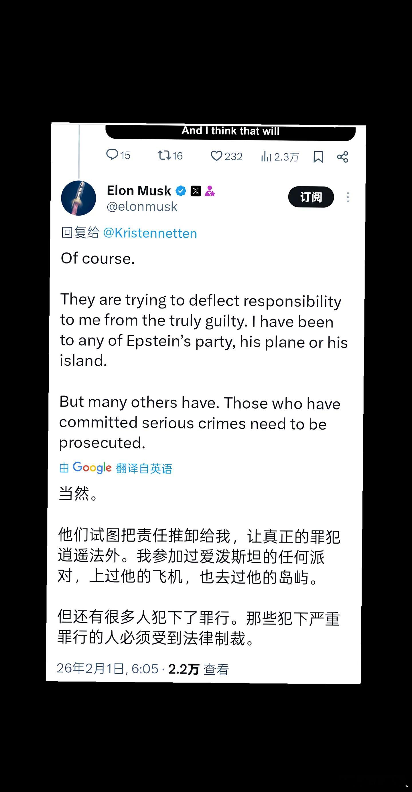 公开的这邮件不是给马斯克实锤了么?!不过马斯克确实像那种上岛后发现不符合自己预期转身就走的人,这家伙能干出来这事儿,问题是你现在不能把所有爱泼斯坦邀请过的人都列入犯罪分子,对吧?!因为你不确定这个人到底去没去、干没干这事儿,毕竟法律是要将证据的,不是说爱泼斯坦邀请你了,你就是坏人,这也说不通……