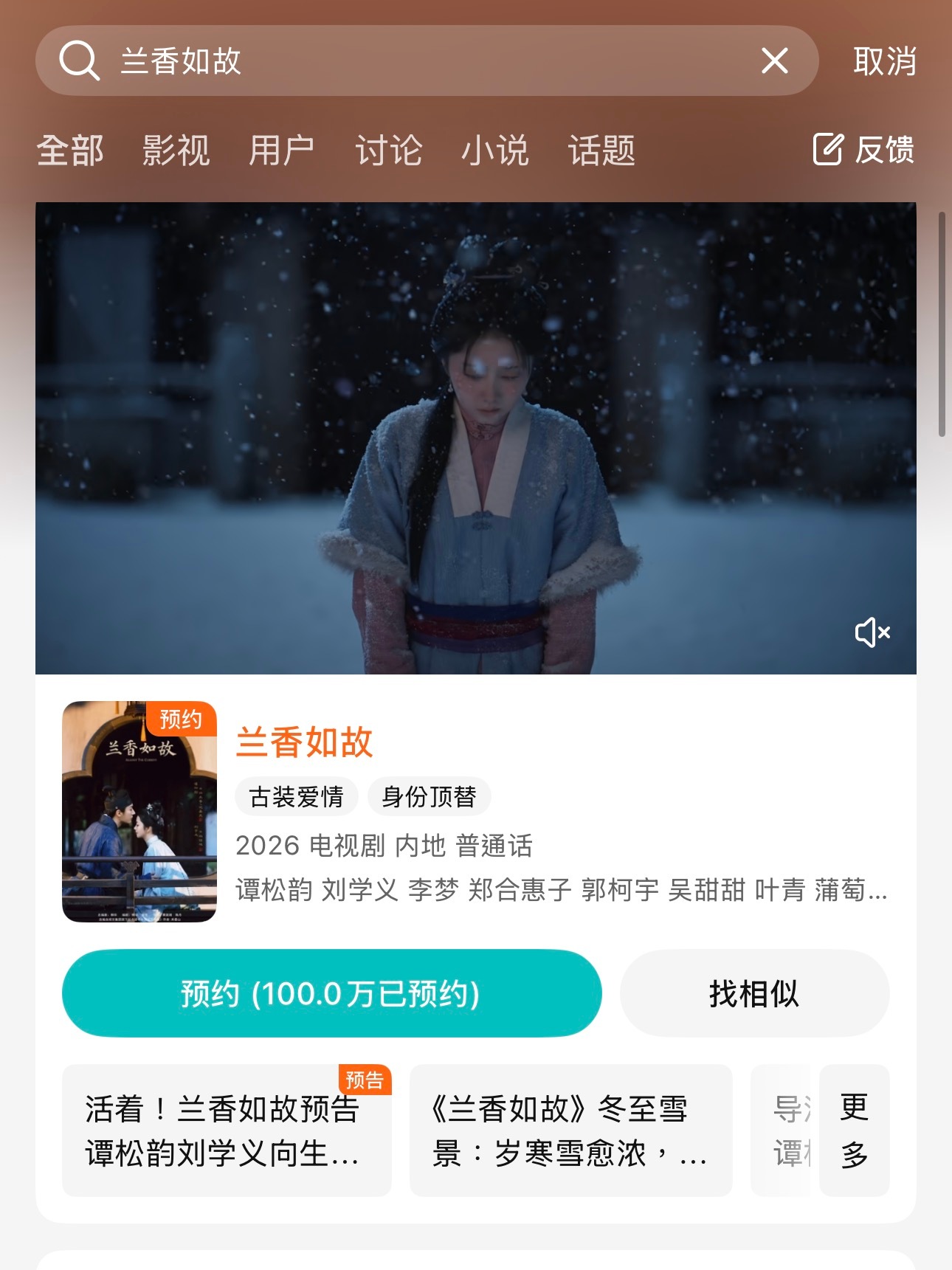 腾讯的预约也破百万咯 《兰香如故》 有谭松韵演许兰香很幸福厉害啊