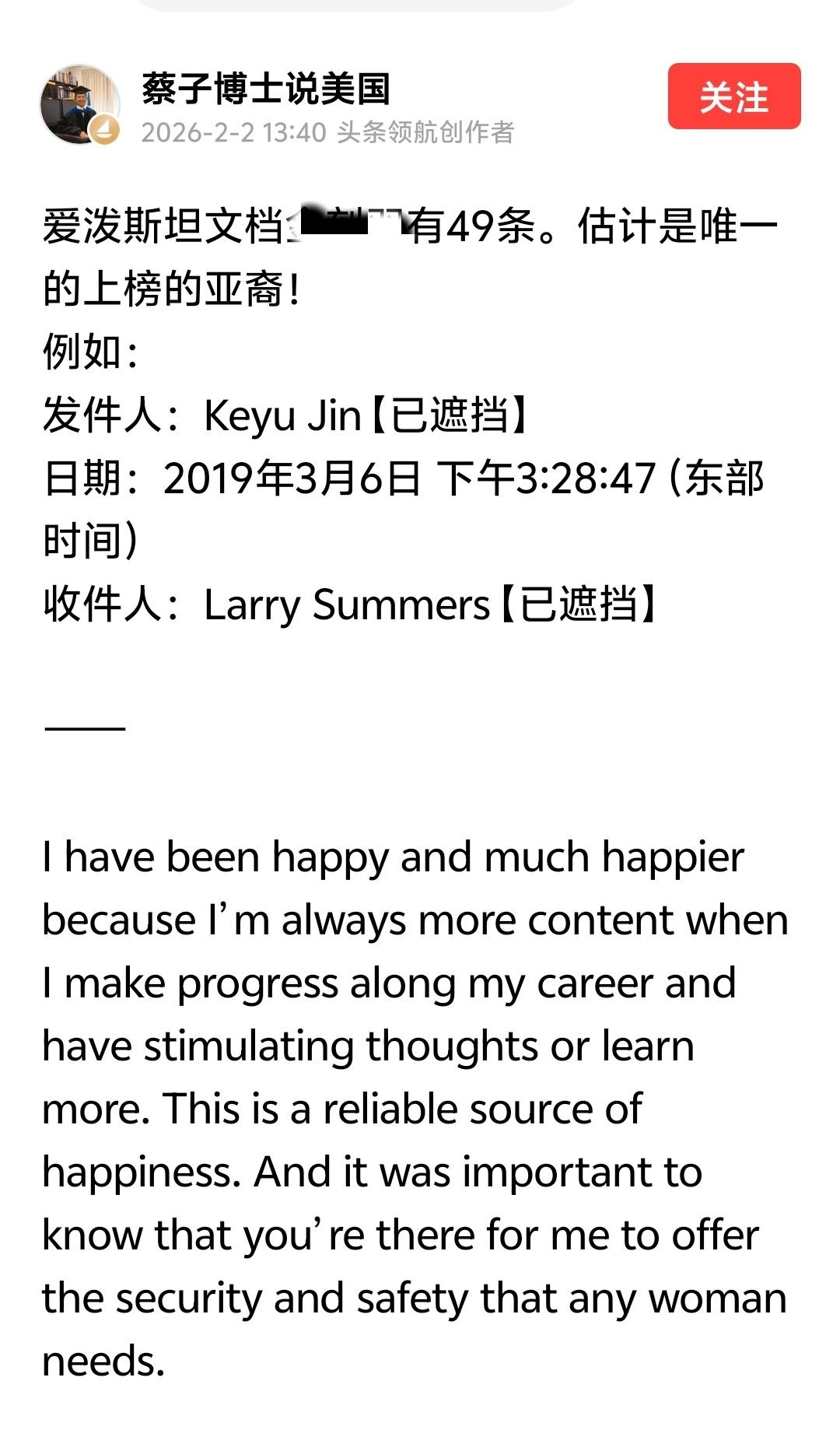 据“蔡子博士说美国”,爱泼斯坦文档中有关XX Jin的有49条。这真是刷新我们对上流社会的下流的认知。一些斯斯文文、地位崇高的男男女女,以前在我们心里那可是殿堂级的人物,高不可攀的存在。一旦偶然被撕下画皮,才看到他们竟然如此不堪。男的不过是荷尔蒙旺盛热衷于交配的衣冠禽兽,女的则是“三通一达”的前驱。原来,“不管你怎样洗呀那也是个脏东西”!
