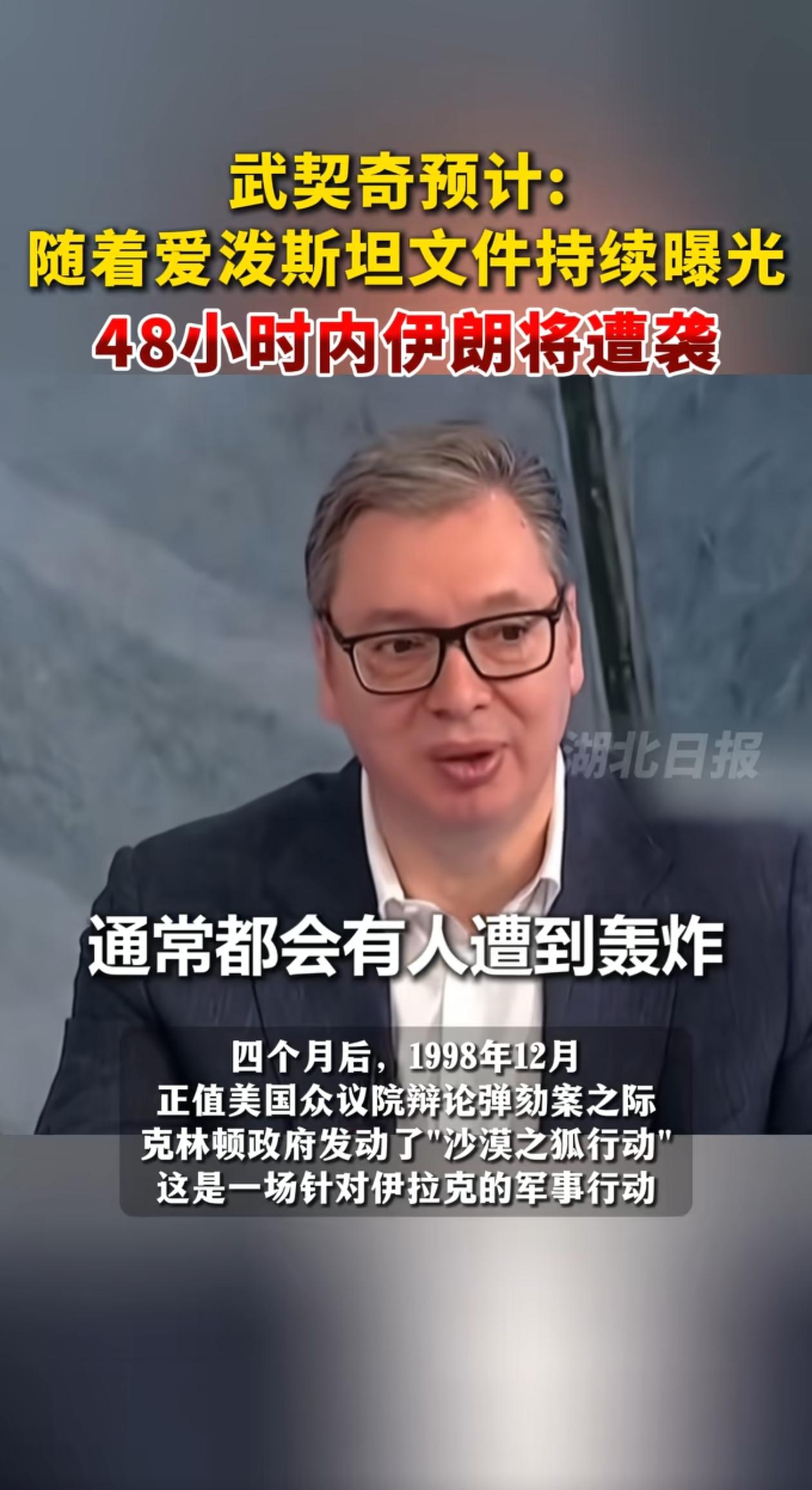 爱泼斯坦事件中特朗普、马斯克都否认自己与其有关联。特朗普虽然在文件中被提及数百次,但他说这是有人要密谋害他;马斯克说自己“从未踏足那个诡异的小岛”,他最支持调查起诉那些虐待儿童的人;塞尔维亚总统武契奇联系当年伊拉克遭袭事件,预测48小时伊朗将遭美军袭击。这事不简单,拭目以待看结果吧!