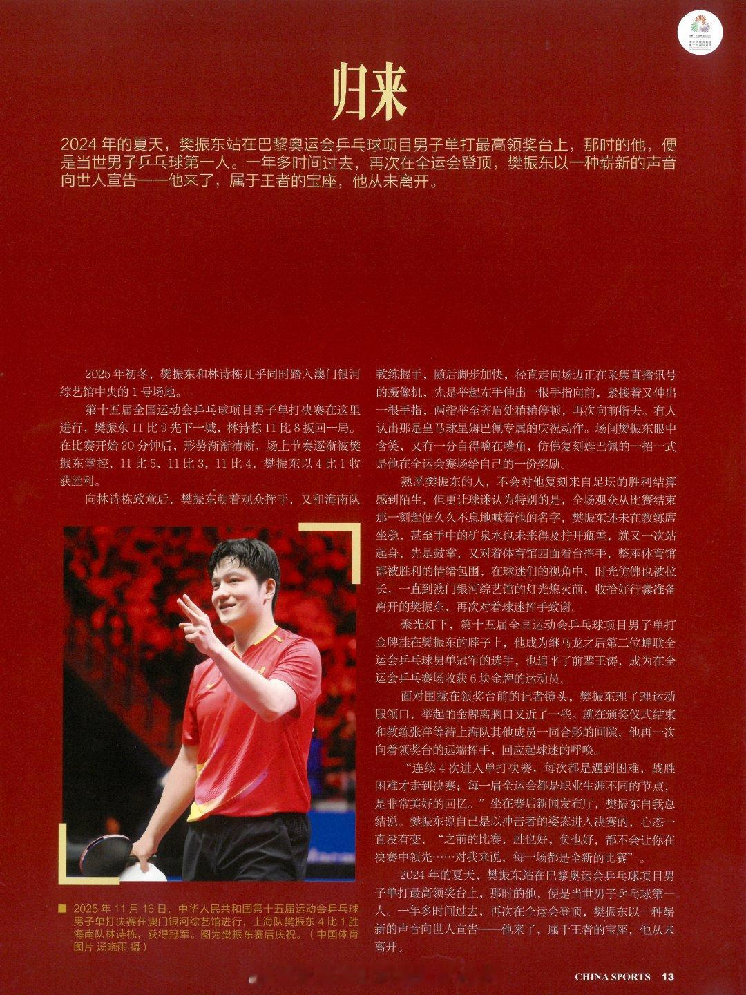 樊振东《中国体育》「樊振东:王者归来」「了不起的樊振东」了不起的樊振