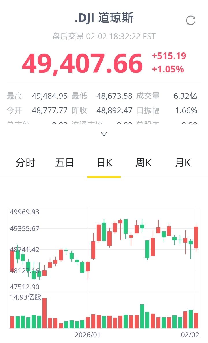 今日A股应该向好。说不定会收复昨日的跌幅。 美国三大指数已止跌回稳,涨幅都在0.5%以上,道指更是涨幅高达1.05%。 外围股市回稳,我们A股没有理由再跌。没有千股涨停,至少也有百股涨停。 这个希望还是有的。 春节前应该还会有一波涨势。 这大半年来股市走势不要看技术面,因为技术面可以任人操纵。只看大涨或大跌,大涨了就清仓,大跌了就加码买进。