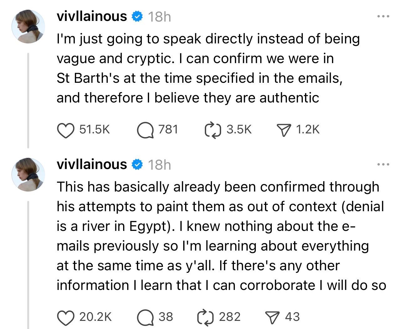 马斯克女儿爆料¹ 评论区很多人被误导了,以为马斯克带着家人去过“萝莉岛”,并不是。他们只是去法国一个岛度假。² 目前看马斯克应该没去过。他揭露爱泼斯坦档案最为积极。³ 这个“女儿”跟马斯克的关系非常糟糕,几乎到了隔空对骂地步。热点科普