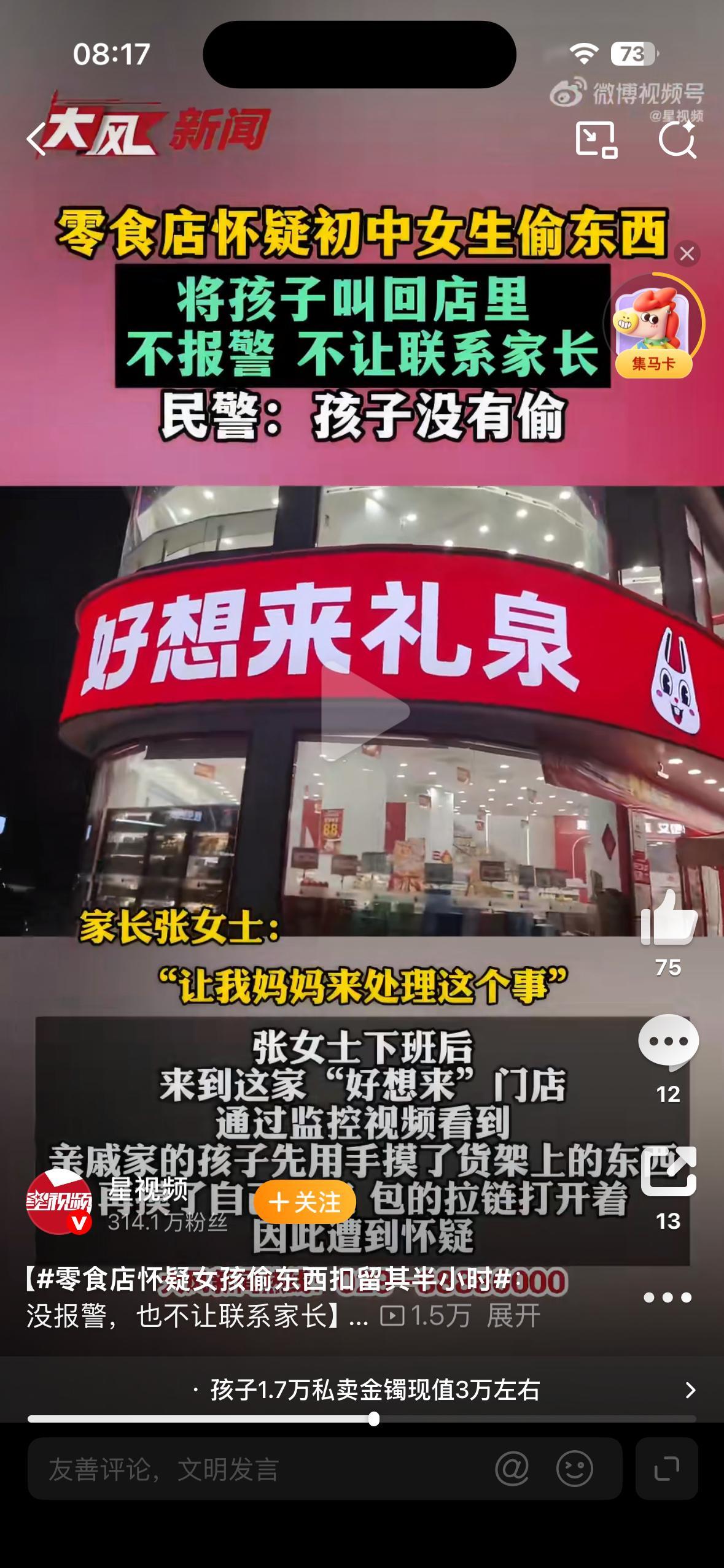 而且不问清事实就随意扣留,既伤害了当事人的身心,也砸了自己的招牌,后续的整顿和规范管理更是必须的。零食店怀疑女孩偷东西扣留其半小时