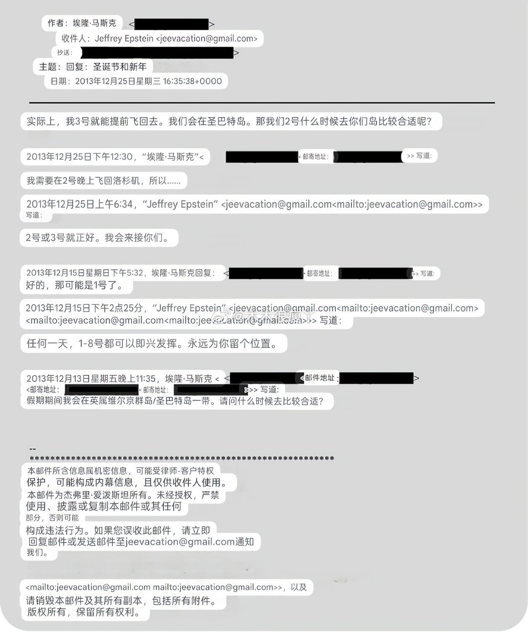 马斯克女儿爆料马斯克爱泼斯坦案再爆锤!亲女儿实锤圣巴特岛行踪,谎言被层层戳穿美司法部最新爱泼斯坦案文件,直接撕破马斯克的谎言!2012-2013年往来邮件显示,2013年12月马斯克在圣巴特岛度假时,主动向爱泼斯坦询问登岛时间,甚至打探岛上“最疯狂的派对”时段,对方还贴心表示可安排直升机接送,这与马斯克一直声称的“仅被邀请且全程拒绝”截然相反。文件曝光后,马斯克火速在X平台狡辩,称与爱泼斯坦通信极少,坚称拒绝了登岛和乘坐“洛丽塔快车”,还将邮件归为“被曲解抹黑”,甚至标榜自己是推动文件公开、追责涉案者的关键人,试图洗白自己。不料辩解话音刚落,就被亲女儿薇薇安·威尔逊当场打脸!薇薇安同日发声,直接证实邮件提及的时间里,马斯克一家确实身处圣巴特岛,坐实了邮件的真实性,还直言父亲正试图断章取义掩盖真相。亲女儿的硬核爆料,让马斯克的处境彻底陷入尴尬,也让这起牵扯众多权贵的爱泼斯坦案,更添重重悬念。