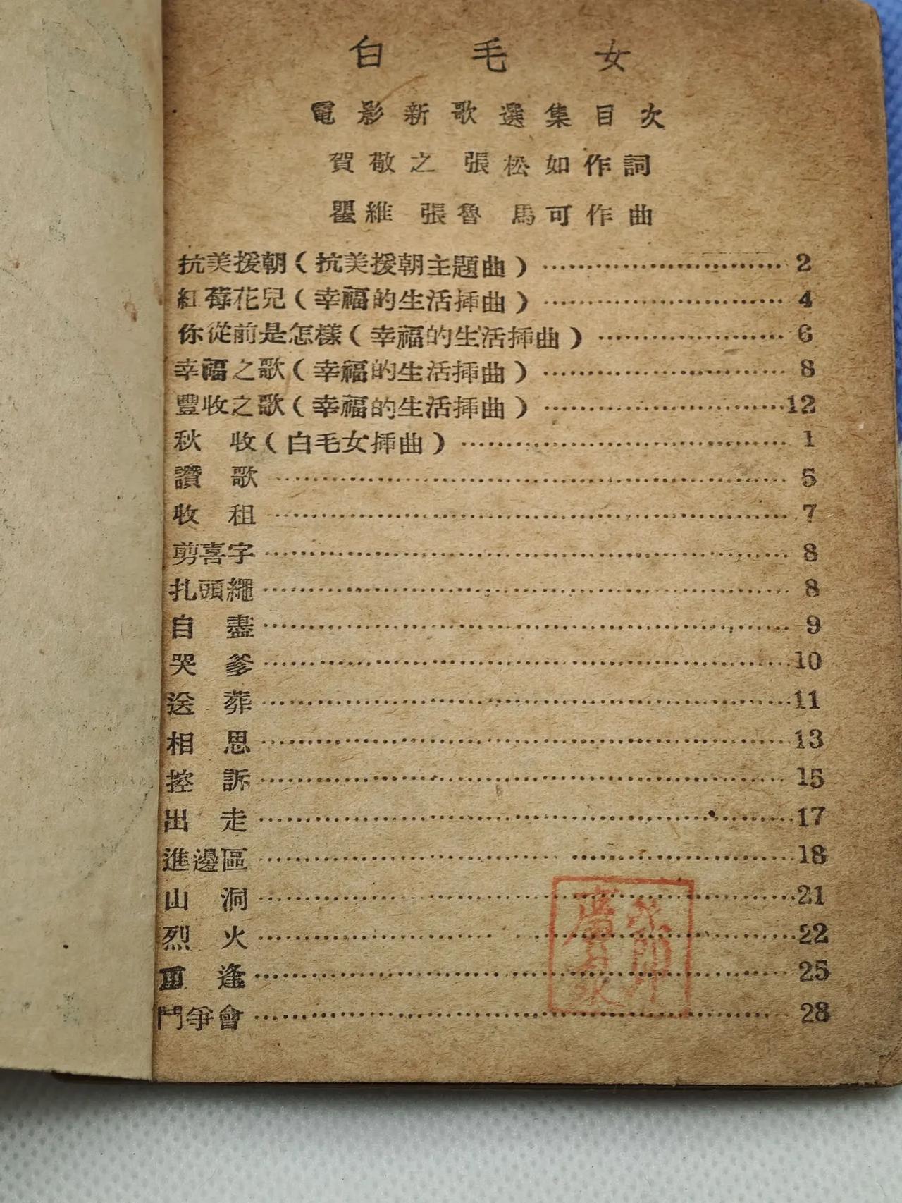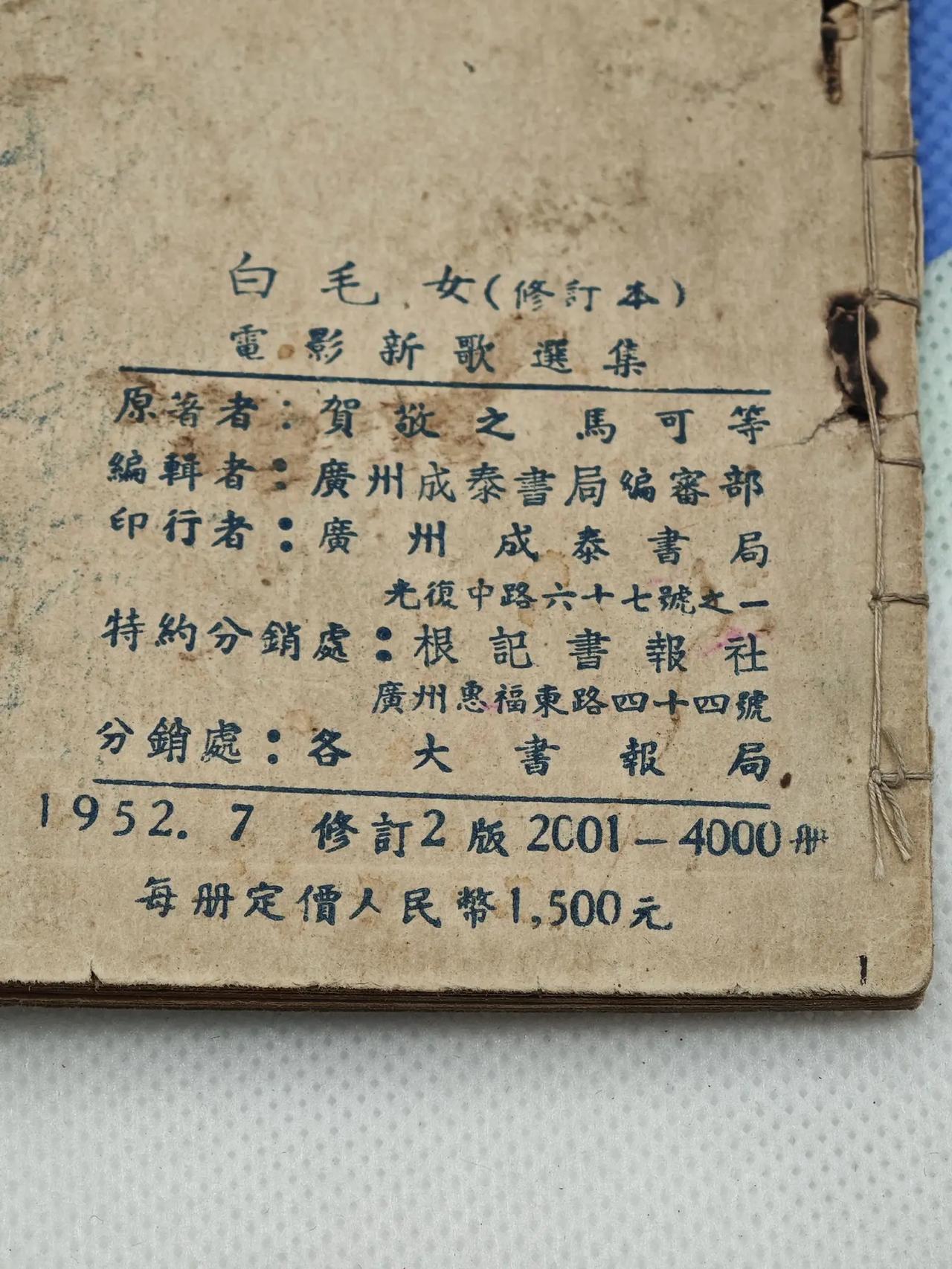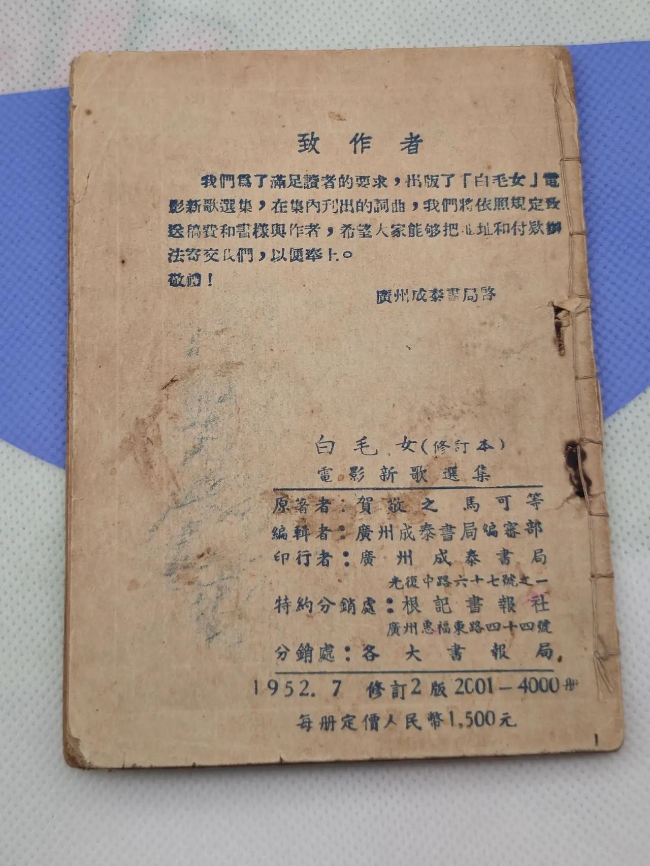 “旧社会把人逼成鬼,新社会把鬼变成人”!“旧社会把人逼成鬼,新社会把鬼变成人”!1952年广州成泰书局的《白毛女(修订本)电影新歌选集》,是红色文艺与时代使命的鲜活见证。源自民间传说的《白毛女》经延安鲁艺创作修订,适配新时代传播。恰逢抗美援朝,书中新增《抗美援朝主题歌》等曲目,联结苦难记忆与保家卫国使命。仅印2001-4000册,小众稀缺,是红色收藏圈极具史料价值的珍品。文玩人的生活 创作者中心