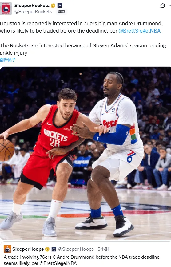 火箭确实对德拉蒙德很感兴趣,他很有可能在截止日被交易 距离交易截止日还有不到3太难,Brett Siegel证实了火箭确实对德拉蒙德很感兴趣,之所以对德拉蒙德感兴趣是因为亚当斯赛季报销了,火箭考虑引进一名替代海王的中锋。