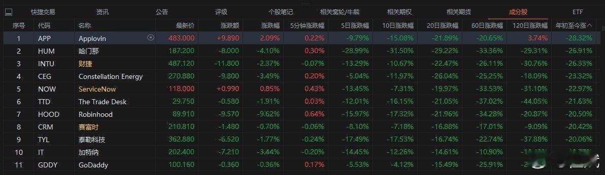 跌幅最多的是软件SaaS公司,很多公司股价最近一年已经腰斩,Tokens支出正快速替代IT 支出,时代的浪潮变化真是太快了,2021年之前还是SaaS软件的高光时刻,短短4年已经今非昔比。