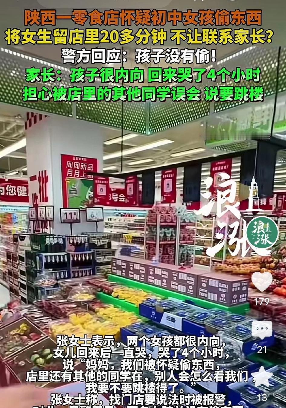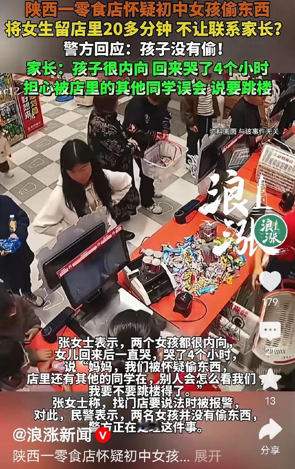 太气人了!陕西咸阳,两名初中女孩逛零食店,竟被店家冤枉偷东西,强行扣留20分钟还被逼当众翻包自证,回家后崩溃大哭4小时,甚至哭着说要跳楼,而警方调查后证实孩子全程清白! 网友: 真的太气人了,仅凭模糊监控就随意冤枉孩子,还做出这样伤人的举动,谁看了都忍不住心疼! 事发当天,两个14岁的初中女生刚结束课业,想着难得的课余时间放松一下,便相约到学校附近的“好想来”零食店挑些爱吃的零食,挑好后结完账正准备走出店门,就被店员突然叫住拦下,一口咬定在监控里看到她们碰过货架上的商品后摸了背包拉链,怀疑二人偷拿了店里的东西,不由分说就要查包,连听孩子辩解的机会都不给,这做事也太武断了。 两个本就性格内向的女孩当场被吓懵了,想辩解却被店员打断,不仅被强行扣留在店里,不允许联系家长、连歇脚坐下都被拒绝,只能站在店门口的显眼位置,在其他来往顾客、甚至同班同学的异样注视下,红着眼眶把书包里的书本、文具、水杯等物品一件件倒出来翻找,任由旁人指指点点。这短短20多分钟的时间,对心思敏感的少女来说,却像一个世纪那般漫长,每一秒都是难言的羞辱,换做哪个孩子,心里都扛不住这样的委屈和难堪。 女孩家长张女士接到孩子带着哭腔的电话后,心急如焚地赶到店里,第一时间要求店方调取完整监控,自证孩子的清白,却被店方直接拒绝。更让人怒火中烧的是,明知自己没有确凿证据,店方不仅毫无歉意,反而恶人先告状先报了警,这操作真的太让人寒心了,做错了不仅不认错,还倒打一耙。 直到警方介入调查,完整调取并查看了店内监控后,才明确证实:两名女孩全程只是正常挑选、结账,从未有过偷窃行为,这一切只是一场彻头彻尾的误会! 可伤害早已造成,无法挽回。其中一名女孩回到家后,再也忍不住内心的委屈和恐惧,崩溃大哭了整整4个小时,一遍遍哭着问家人“别人会怎么看我们”,甚至情绪失控到说出“不想活了,要跳楼”的话,连看到书包都忍不住发抖,再也不敢提去零食店的事。孩子的世界本就单纯,经此一事,心里得留下多大的阴影啊。 而截至目前,涉事的“好想来”零食店方,也仅仅是轻描淡写地口头承认是“误会”,始终没有对孩子和家长做出正式的道歉,更不谈后续的补偿,这样的态度,实在让人无法接受。 💬 网友看完集体炸锅,纷纷为孩子鸣不平: - 有网友心疼孩子:光是想想就觉得揪心,我家孩子也差不多大,要是被人这么不分青红皂白地拦下、当众翻包羞辱,我真的会疯!内向的孩子本就格外在意别人的眼光,这一下的打击,不知道要多久才能缓过来! - 有网友科普法律:商家根本没有任何权利私自限制未成年人的人身自由,更别说当众翻包、进行言语羞辱了,这已经涉嫌违法,侵犯了孩子的人身权利和人格尊严! - 有网友呼吁追责:必须要求店家公开向孩子和家长道歉,还要承担孩子的心理疏导费用和相应的赔偿,不能让孩子平白受了这么大的委屈,最后却无处说理! 说到底,十几岁的孩子正是脸皮薄、心思敏感的时候,心里的那点自尊比啥都金贵,哪经得住这样当众的冤枉和羞辱啊。商家守着店,想防小偷、护着自己的东西没问题,这谁都能理解,但做事得讲证据、有分寸,不能凭着一段模糊的监控,就不分青红皂白把孩子扣下,还逼着孩子当众翻包,这不是维护权益,这是仗着自己是店家,欺负孩子小啊。 这事儿也给所有商家提个醒,遇事冷静点,讲证据、守规矩,别因为自己的疏忽,伤了孩子,也砸了自己的招牌。 这个事情,大家怎么看呢? 陕西零食店冤枉女孩偷窃 未成年人被非法扣留 心理伤害