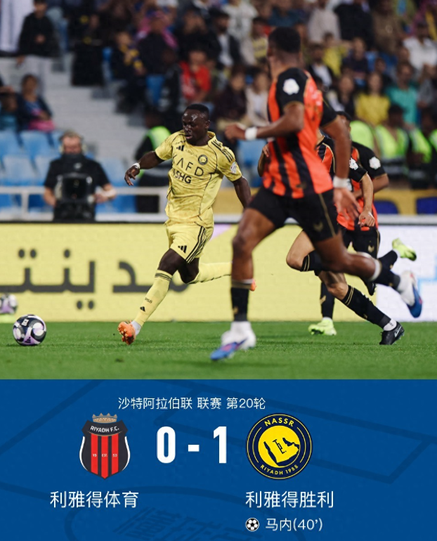 2月2日沙特联赛第20轮,利雅得体育主场对阵利雅得胜利。上半场,菲利克斯助攻,马内破门,下半场,马内进球因越位被吹。最终比分利雅得体育0-1利雅得胜利。