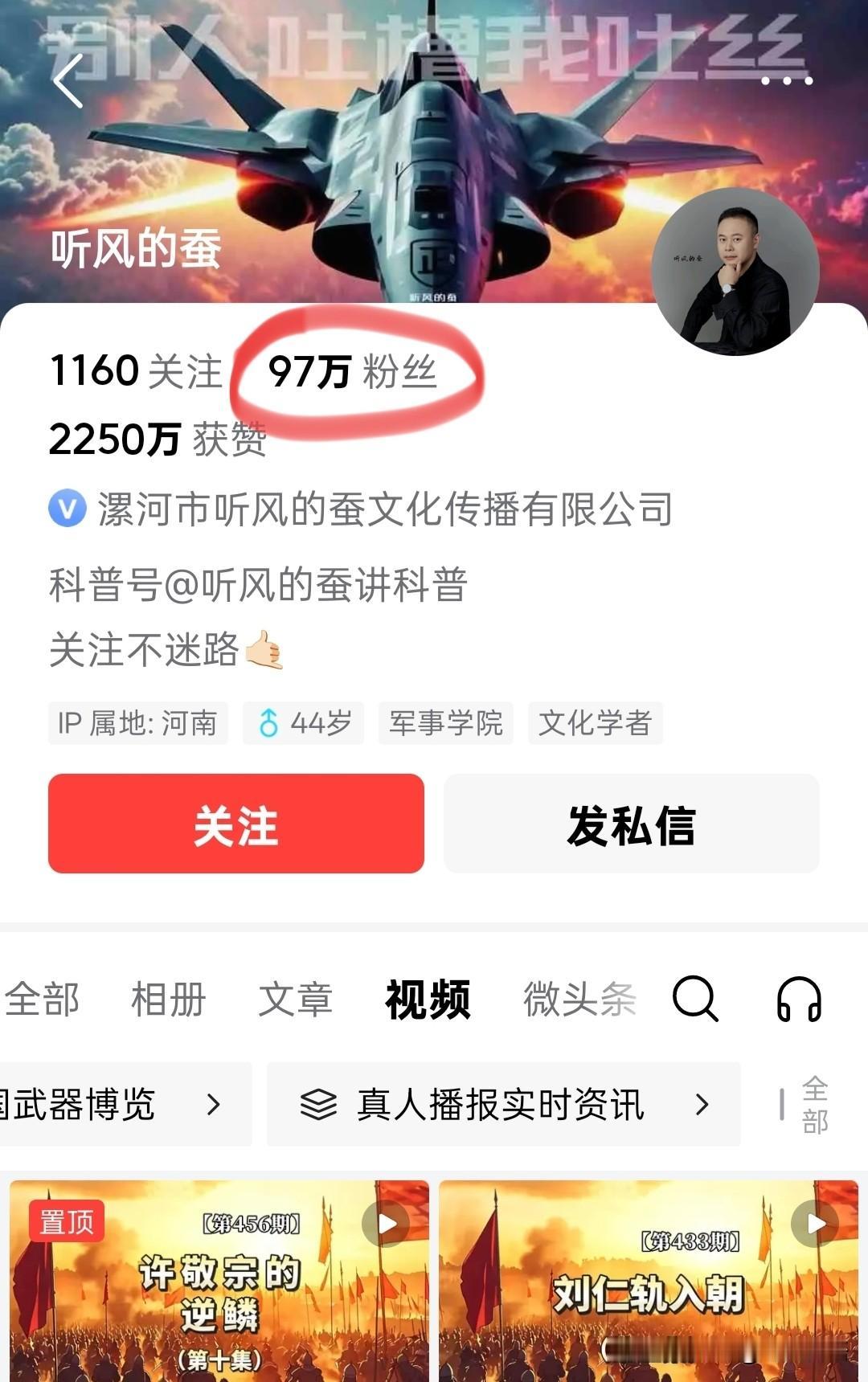蚕哥(听风的蚕)是大家喜欢的军事类博主。不过最近遭遇了麻烦,抖音粉丝从近2000万锐减至400多万,头条粉丝也从近800万骤降至79万。最重要的是,他是被系统强制取关的,即便有人关注他,粉丝量仍会持续下滑。这意味着什么呢?是不是他近期因违规而受到处罚了?不过,具体是什么原因导致处罚,目前还不得而知。 先抛开网上那些阴谋论,我们不妨大胆猜测一番。 其一,军事涉密问题。这种可能性其实较小。他视频里提及的绝大多数武器数据都是公开可查的,只是用通俗易懂的语言普及军事常识,让更多人了解武器的先进性,所以因此被处罚的概率不高。 其二,或许存在问题,即他所讲的故事的真伪性。不知大家是因何关注蚕哥,我关注他主要是因为他讲述了许多军事事件背后的故事,把整个来龙去脉,甚至现场情况都讲得清清楚楚,这是其他博主难以做到的。但问题也随之浮现,首先,如何证明他所说的故事是真是假?尽管蚕哥声明很多资料源自网上可查的公开信息,但如今网上虚假信息泛滥,且军事行动涉密程度高,外人很难轻易知晓。然而,蚕哥的粉丝基数庞大,他即便编造一个故事,也可能被粉丝传成真实事件,进而导致真假消息混杂。个人猜测,他粉丝量骤减可能与此有关。 听风的蚕 蚕哥 军事博主老蚕