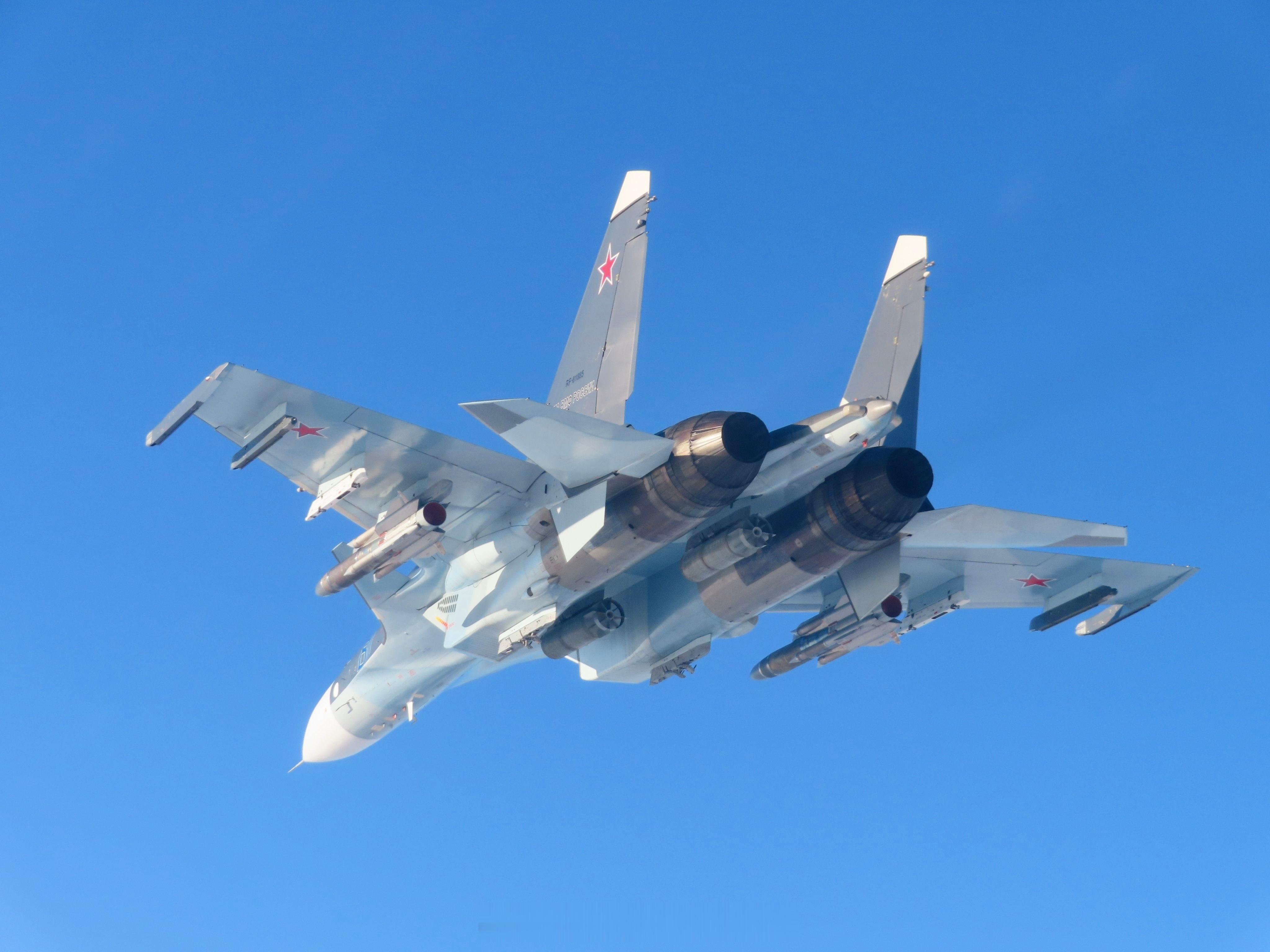 北约防空值班战机在波罗的海上空拦截了俄罗斯海军航空兵的Su-30SM2战斗机,西班牙F-18拍到了比较清晰的画面