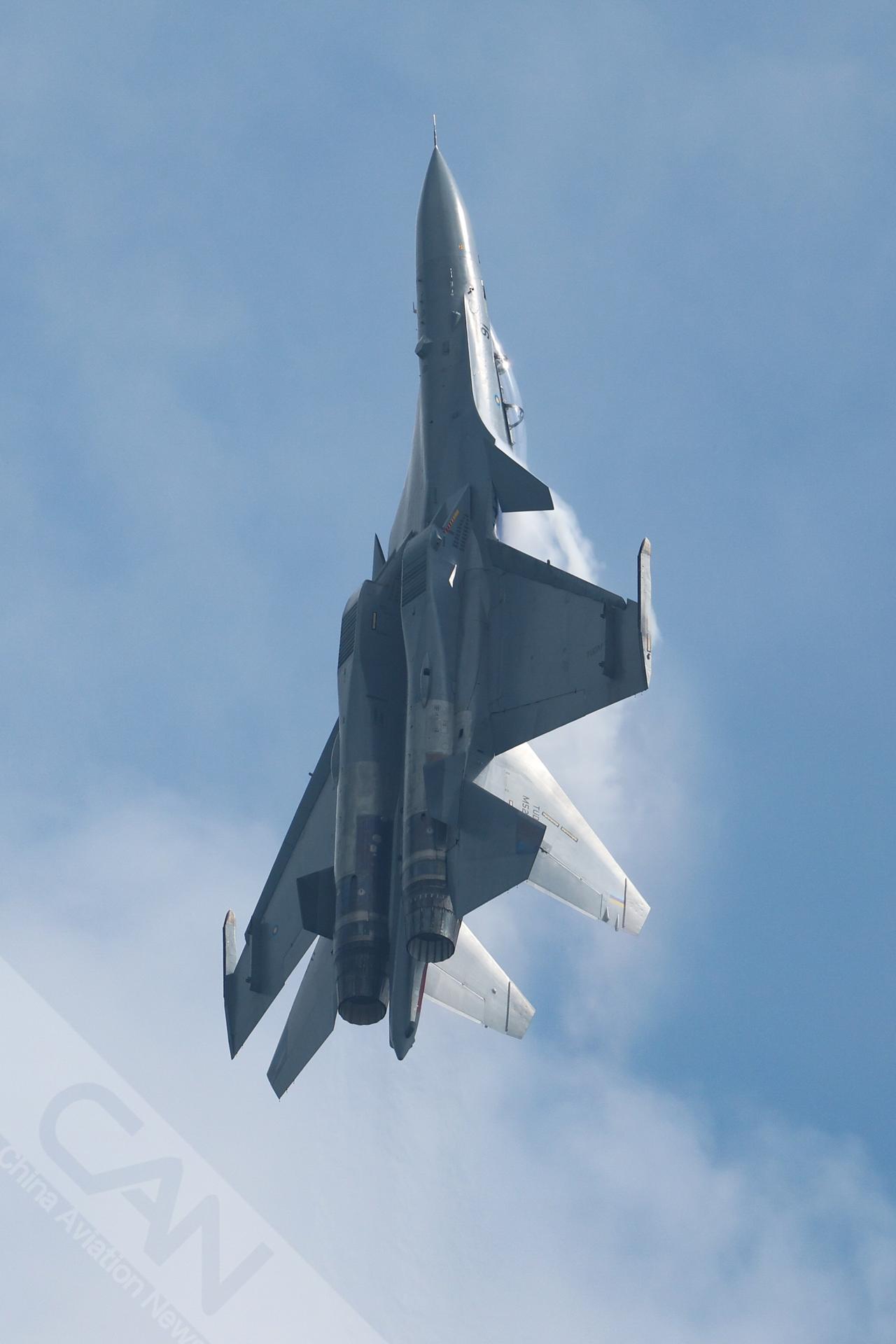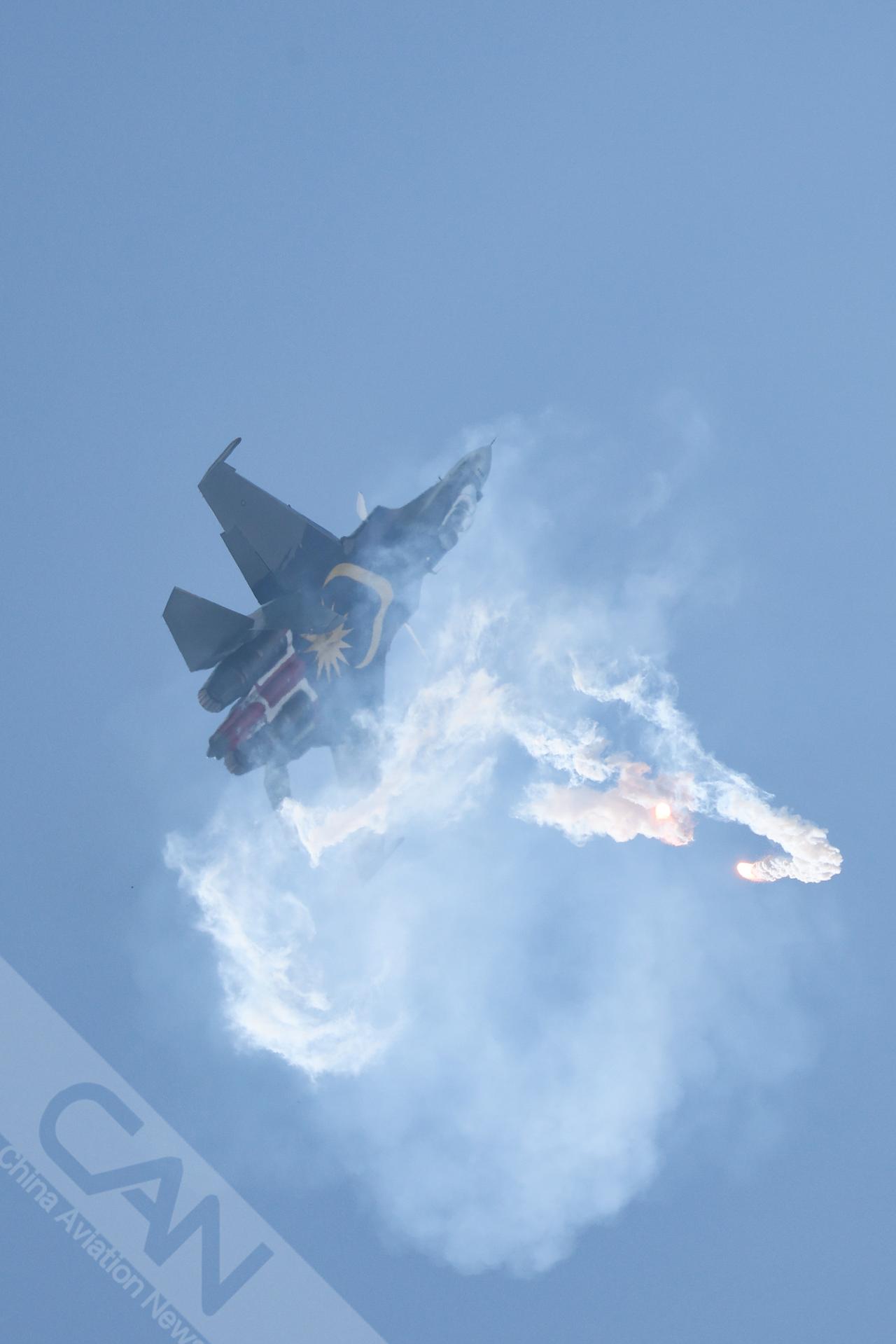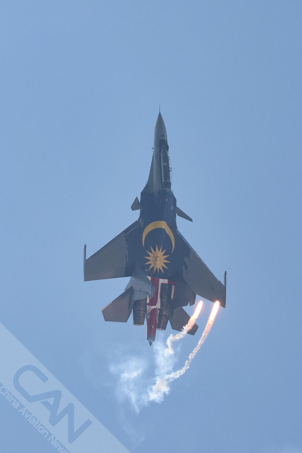 2月1日,在新加坡樟宜展览中心举行的新加坡航展媒体预演上,一架马来西亚皇家空军SU-30MKM战斗机进行飞行表演。(摄影:王强 潘力)