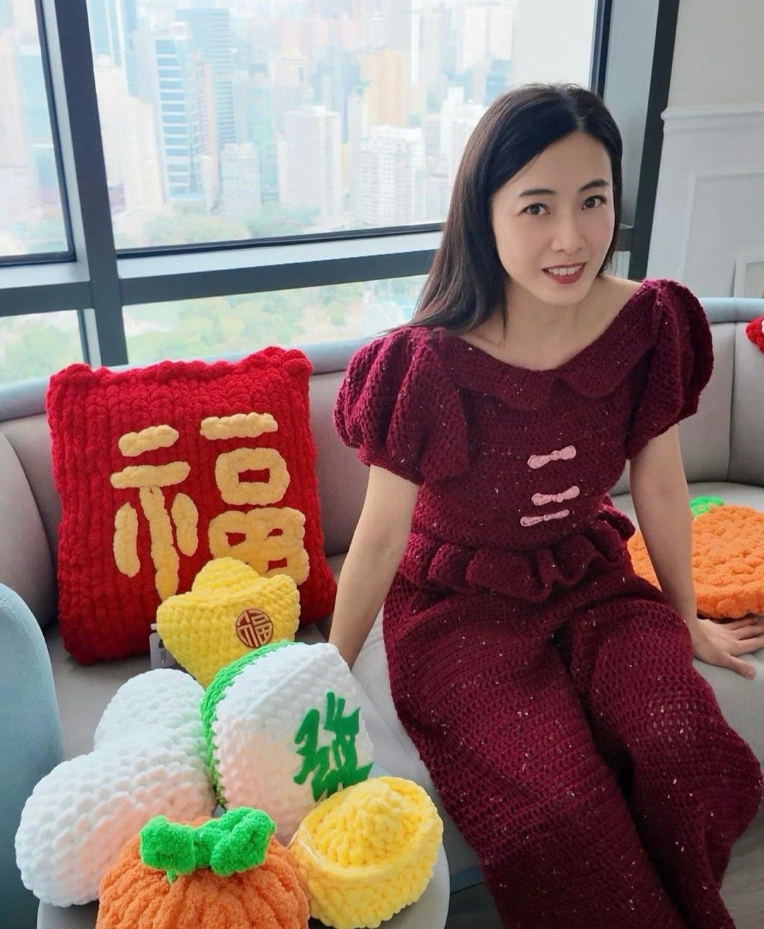 甘比又开始展示自己新年编织品,这衣服版型看着还行,但不知道为什么一上身就是很土气。