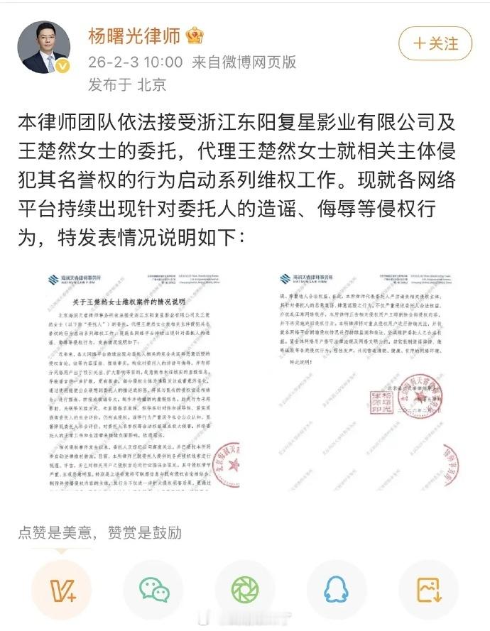 王楚然方发布告黑维权声明,出道至今首次告黑!网络并非法外之地,支持王楚然依法维权!