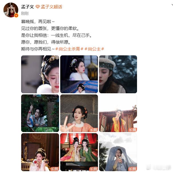 孟子义从淤泥里杀出生机 孟子义发文告别了尚公主感受到了满满的一份意义了呀,从淤泥里面杀出的生机,一定会绽放出光芒的呀,期待这部剧的播出 孟子义发文告别了尚公主