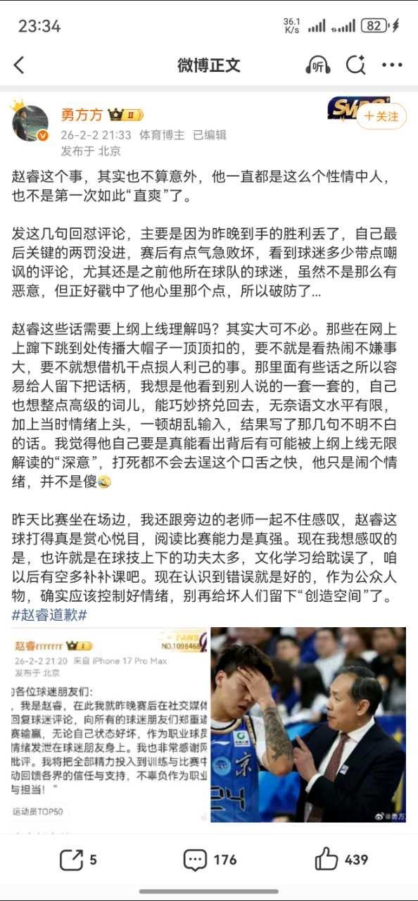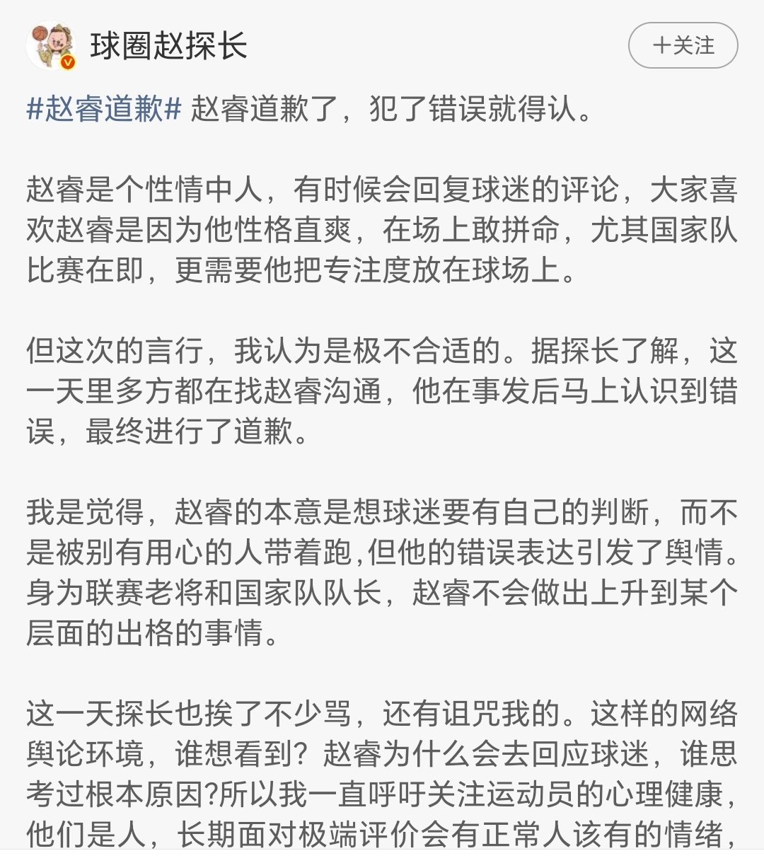 著名篮圈资深杨毅老师说过,充值付费说话得找赵探长,赵睿的不当言论,看来没少花公关费,正负号大记者和勇地道,都出来替洗白公关类发文,这年头球迷也不是傻子。但你们真的没必要这么明显哈ps:杨毅老师原话,我现在的节目都是付费的节目,怎么会用付费的节目去搞舆论战,现在想搞舆论战必须要找活跃在第一线的球圈赵探长 !cba赵睿社交媒体不当言论全网热点共创计划CBA