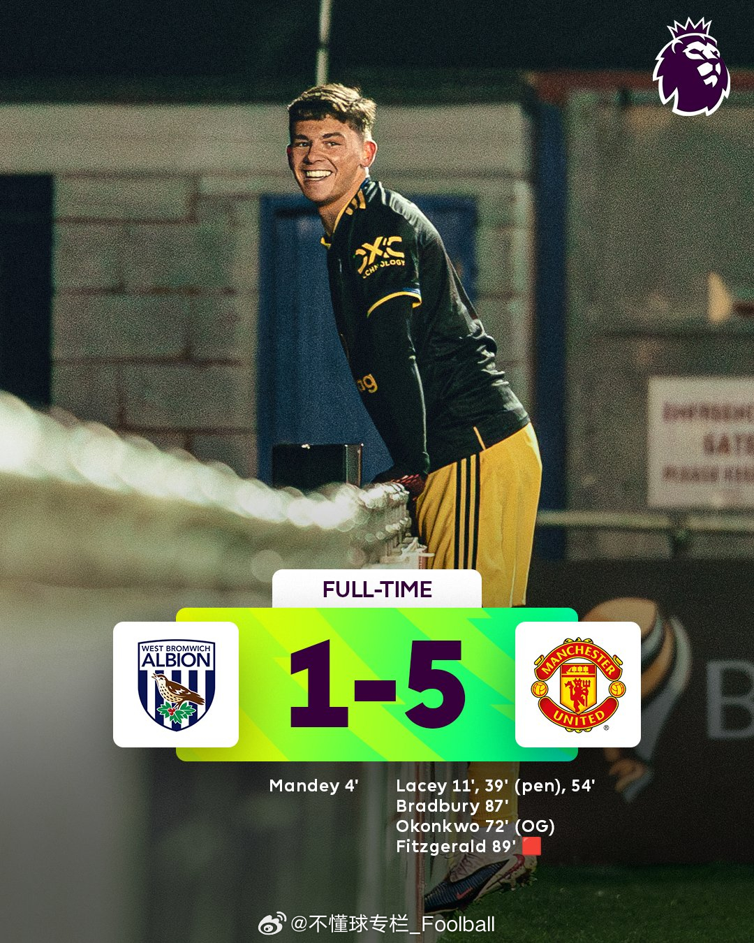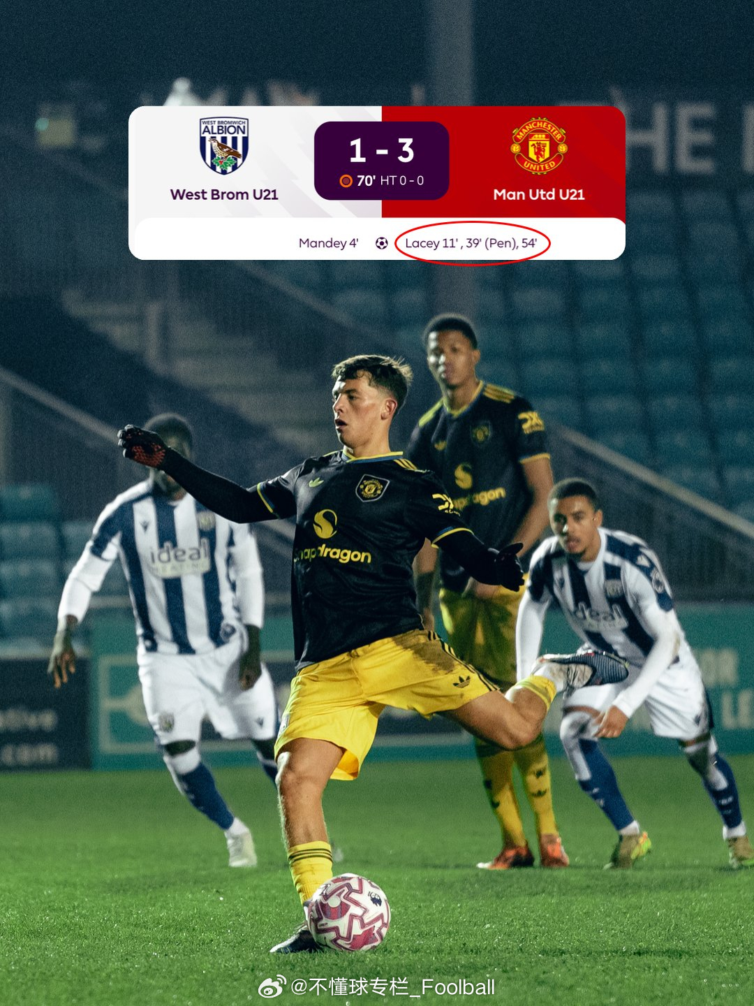 曼联U21开场先丢一球,随后莱西帽子戏法帮助球队3-1逆转比分。最后曼联5-1大胜西布朗,在少赛一场的情况下重回PL2榜首。莱西过去3场U21比赛进了6个球。