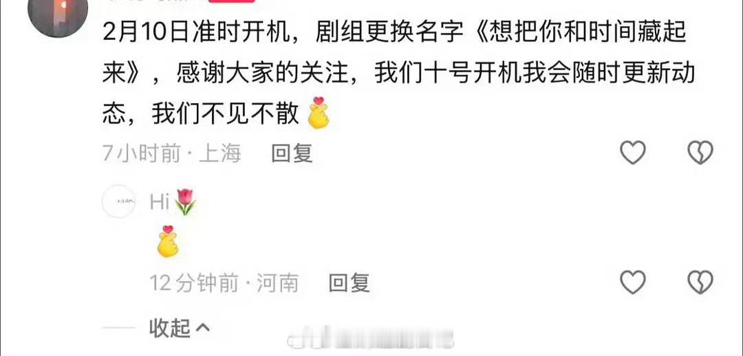 章若楠二月不进组🤔吃到🍉章若楠、王安宇《你那儿几点》改名《想把你和时间藏起来》,2月10日准时开机~主演依然是章若楠、王安宇。 从你那儿几点去到雾里青了吗?期待吗?