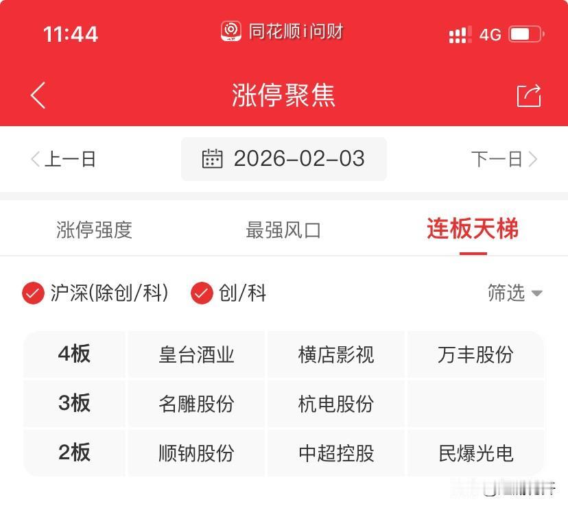 现在该明白了,指到哪,打到哪,要听指挥,要理解上官的意图。昨天说了,“指数这一杀跌,个人觉得是最后一下了,明天会有资金救市的,4029就是强支撑,明天贵金属延续下跌,给明天与指数共振的方向会提供更大的空间。” 资金一出手,立马局面全变化了。最高板,酒、剧、化工各一个,都是轮动支线,看2、3板的,都没有梯队形成,3板名雕,三哥票,杭电,CPO最高位,要重点关注了。 首板,航天15个,AI9个,看指数如何走吧,要拉十个连阳,估计就还在老主线里,抓细分的龙头;如果只是做指数抵抗下跌,那就看最强权重板块里的核心,当中黄金的模式来套利。 上午,就这些,还需要看,不好下定论。