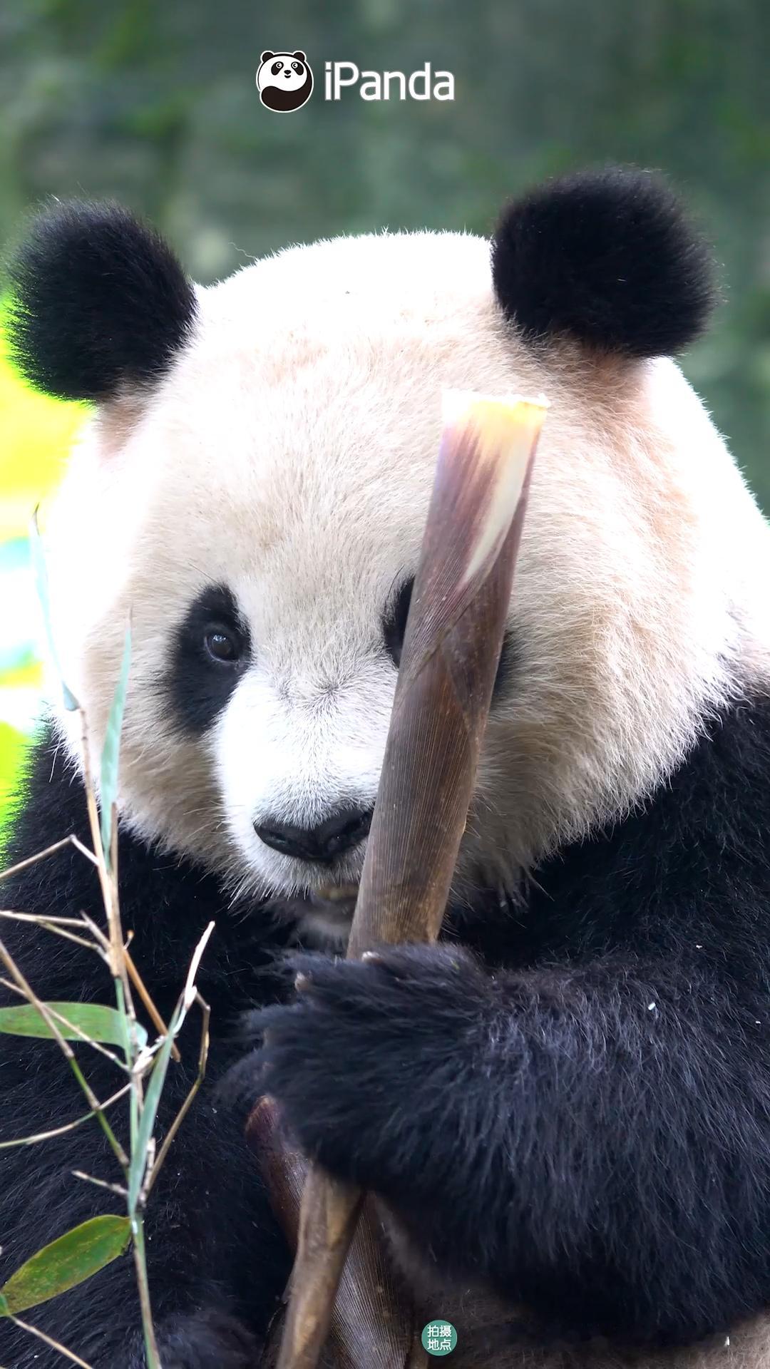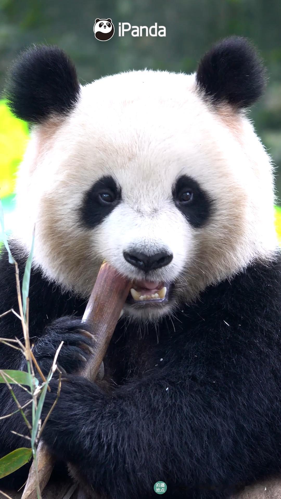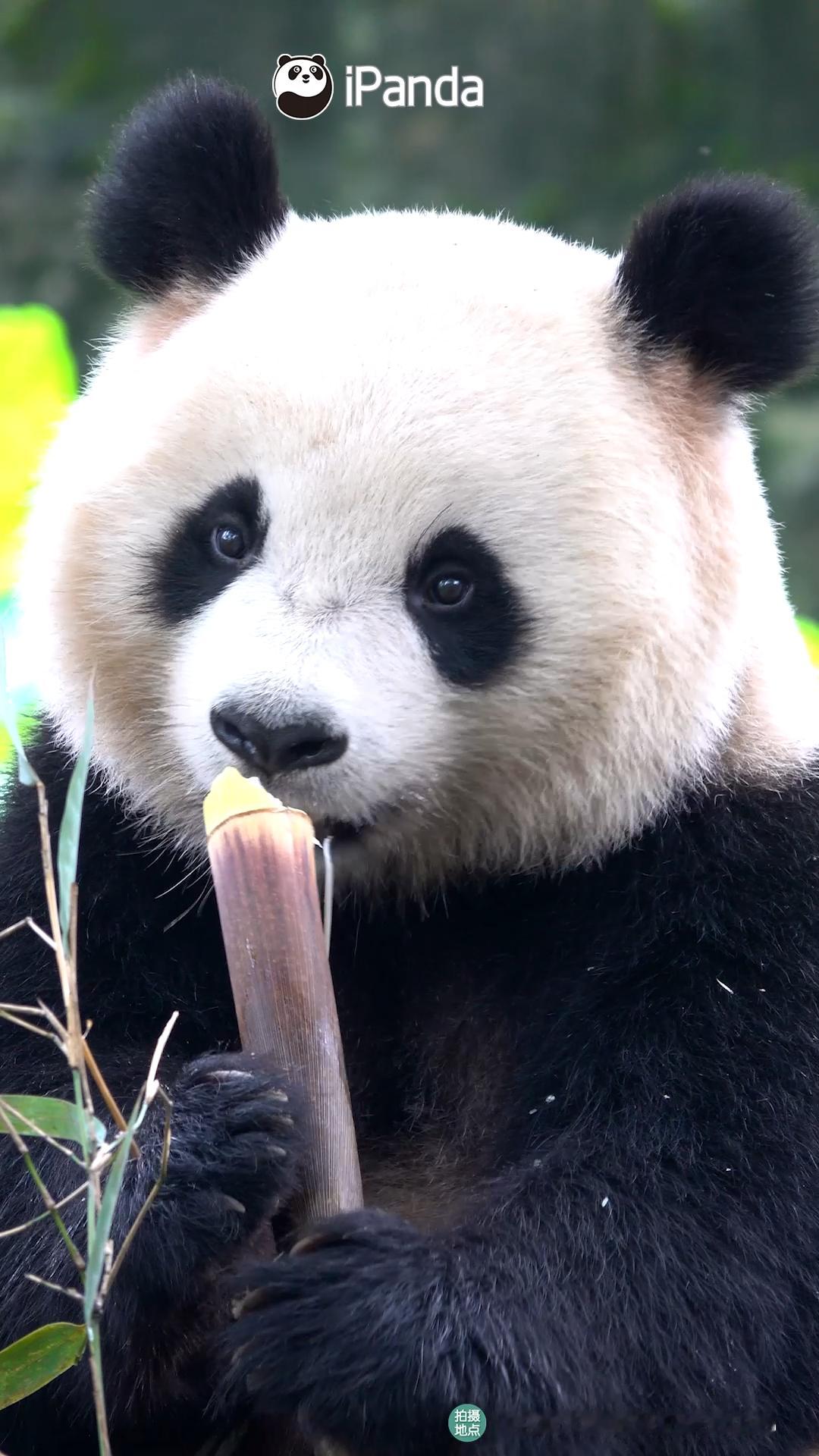 我的星星眼不仅是因为美味竹子,更是因为看到了姨姨呀~大熊猫悦悦 熊猫趣图