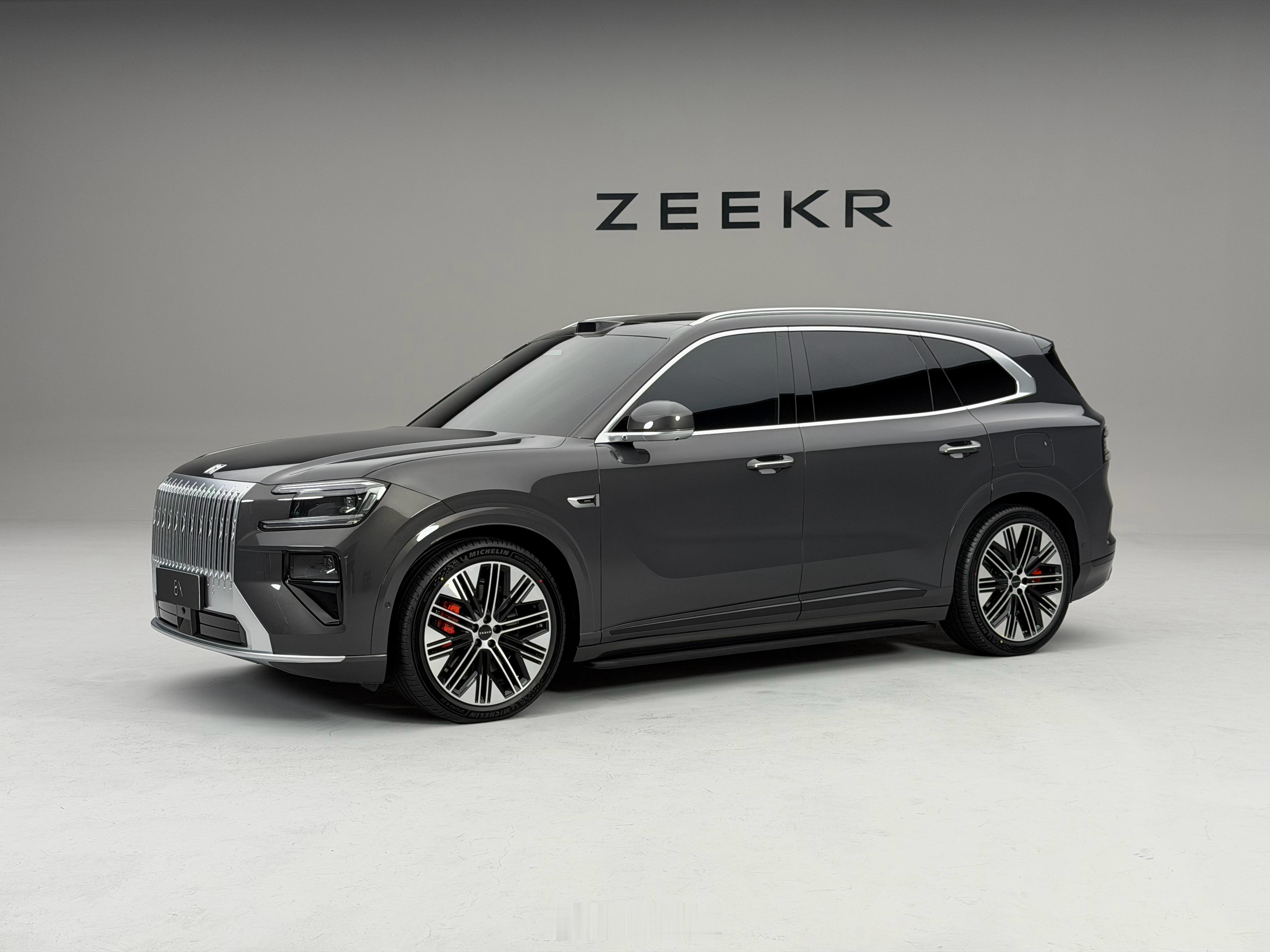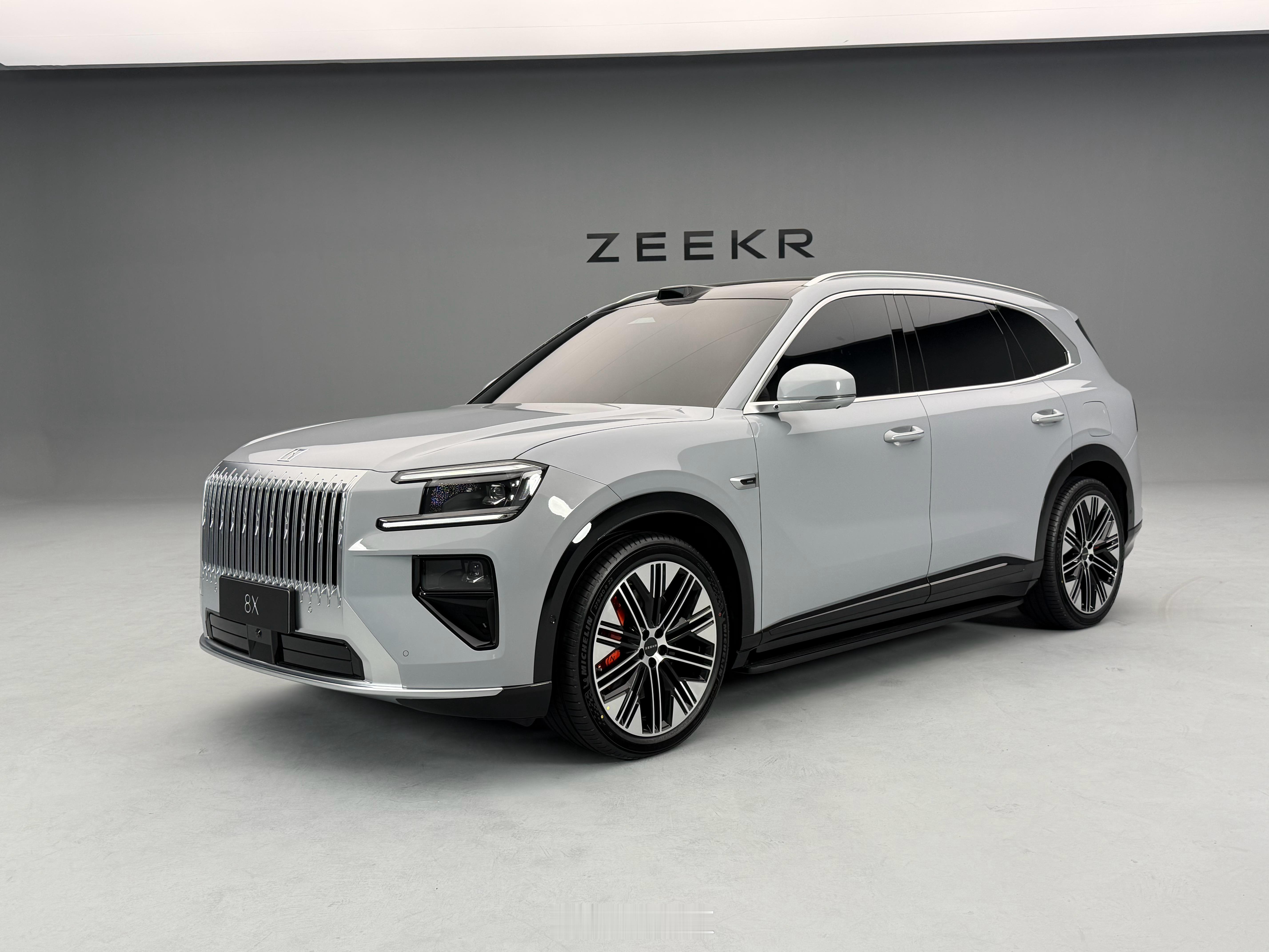 极氪8X实车亮相实拍五种颜色:云珀红、极夜黑、极昼白、玄武灰、月海灰、极昼白。