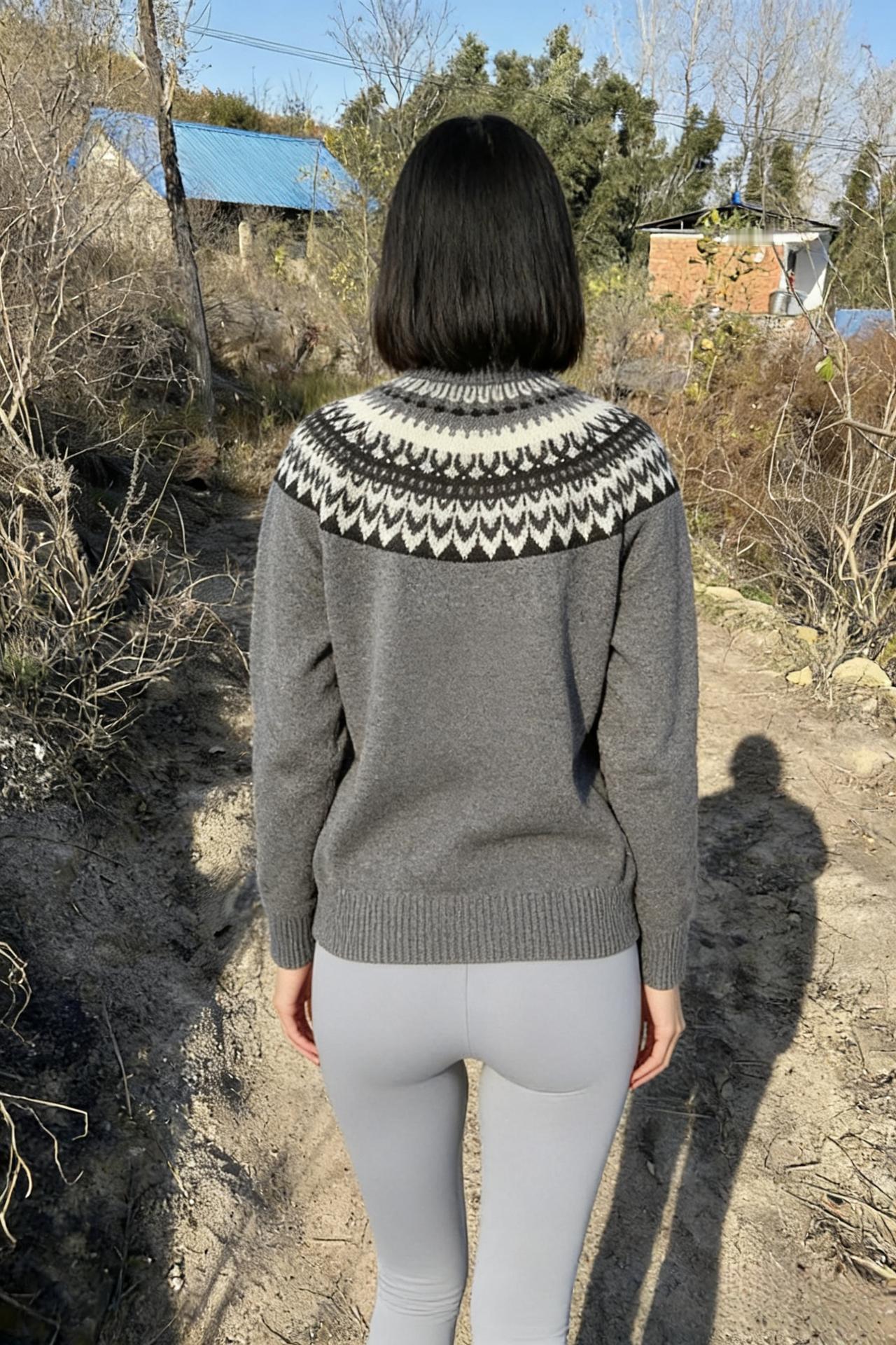 她把背影留给季节 灰毛衣的针脚里,藏着去年的雪 野径的风,穿过费尔岛纹样的领口 卷走了第三片落叶 ~ 瑜伽裤贴着弧线,像一弯新月 踩碎了阳光在泥土上把诗书写 长发是暗涌的波浪 短发是刀锋,把岁月轻柔地切 ~ 她不回头,就成了远方 成了瓦蓝屋顶下,最柔软的想象 成了枯草丛里,唯一的鲜亮 成了我镜头里,走不完的寻常