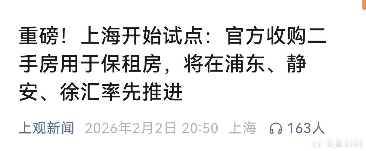 上海启动了一个挺有意思的试点:由政府牵头,收购市区的二手房,装修后作为保障性租赁住房,租给年轻人。换句话说,这是给上海的住房循环系统,做了一个“搭桥手术”,目的是让各方都受益。第一,对有意卖房、甚至“卖旧买新”的人来说,政府按市场评估价买你的房子,还有什么不放心的!特别是市场上那些住了几十年的“老破小”,政府给你提供一个稳妥、省心的推出渠道。第二,对正在找房的新上海人和青年人才来说,多了一批地段好、交通方便的保租房。这些房子收上来后会统一装修再出租,租金还会比市场价稍低。第三,对整个上海楼市来说,一举多得。既盘活了存量房屋,又快速增加了保障房供应。目前,上海有三个区,正展开试点,而且是“一区一策”。比如浦东新区,重点针对内环内、2000年以前建成、面积70平方米以下、总价400万元以内的小户型住宅。采取“以旧换新”的闭环操作,特别适合改善型业主。比如静安区,优先收购产权清晰的小户型房源,并鼓励业主将售房款用于购买静安区内的商品房(尤其是新房)。比如徐汇区,主要瞄准市场上在售的小户型存量房源,收购后统一装修改造,作为保障性租赁住房向符合条件的市民供应。而对于老百姓来说,这项政策的试点,相当于试图用创新的“以购代建”模式,让房子的流动更顺畅。如果这个试点能成功,未来很可能在上海更多区域推广。买下二手房用于保租房上海试点收购二手房做保租房上海晏秋秋