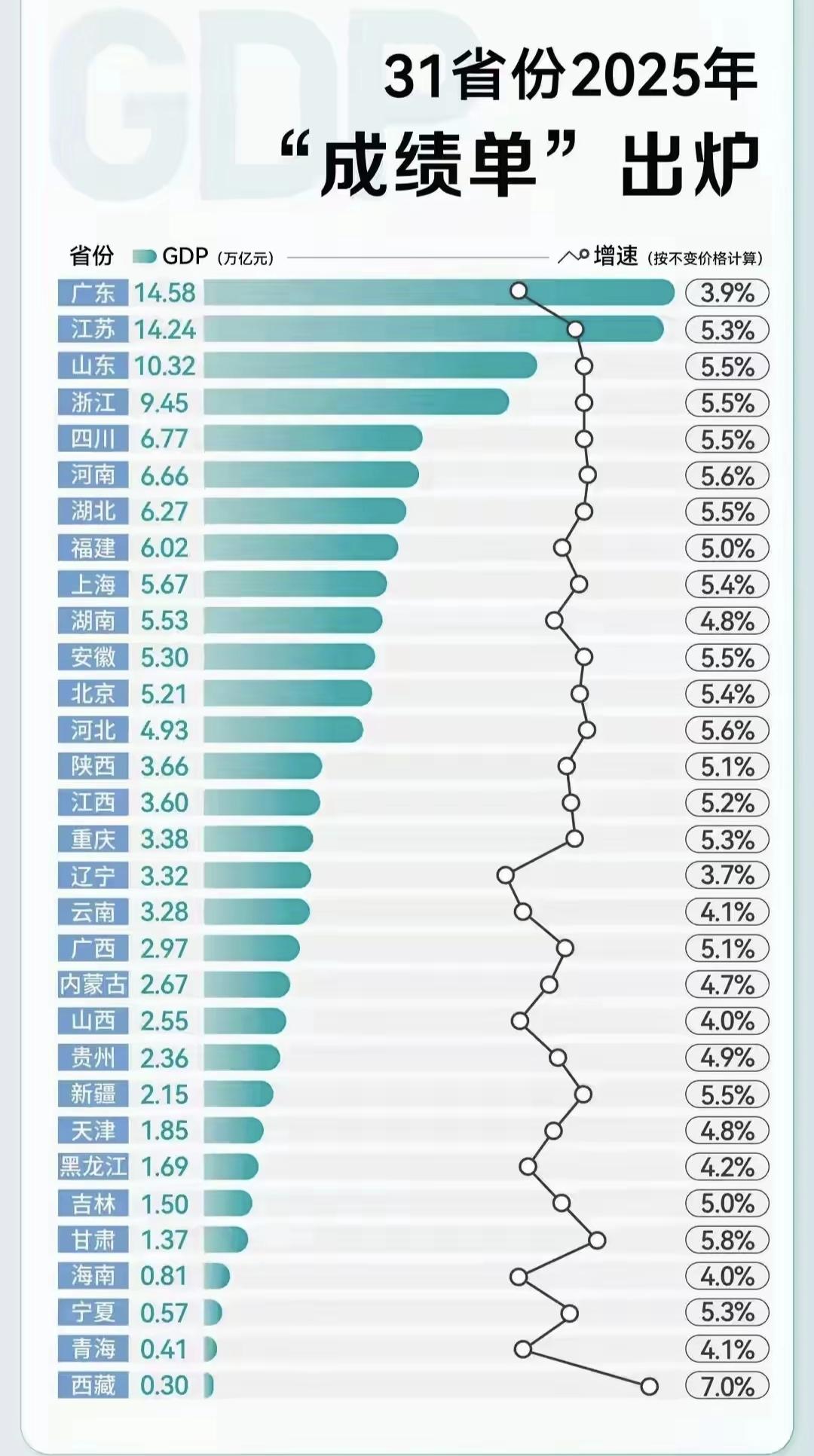 2025年全国各省区的GDP都更新完毕了,广东增长率全国倒数第二,真是汗颜。曾经的东西南北中发财到广东,中国经济引擎怎么熄火了。大环境不好全国都一样,广东只能自己找原因了。而且广东人口还在流入,GDP增长率比不过那些人口流出省份,真的不应该啊。