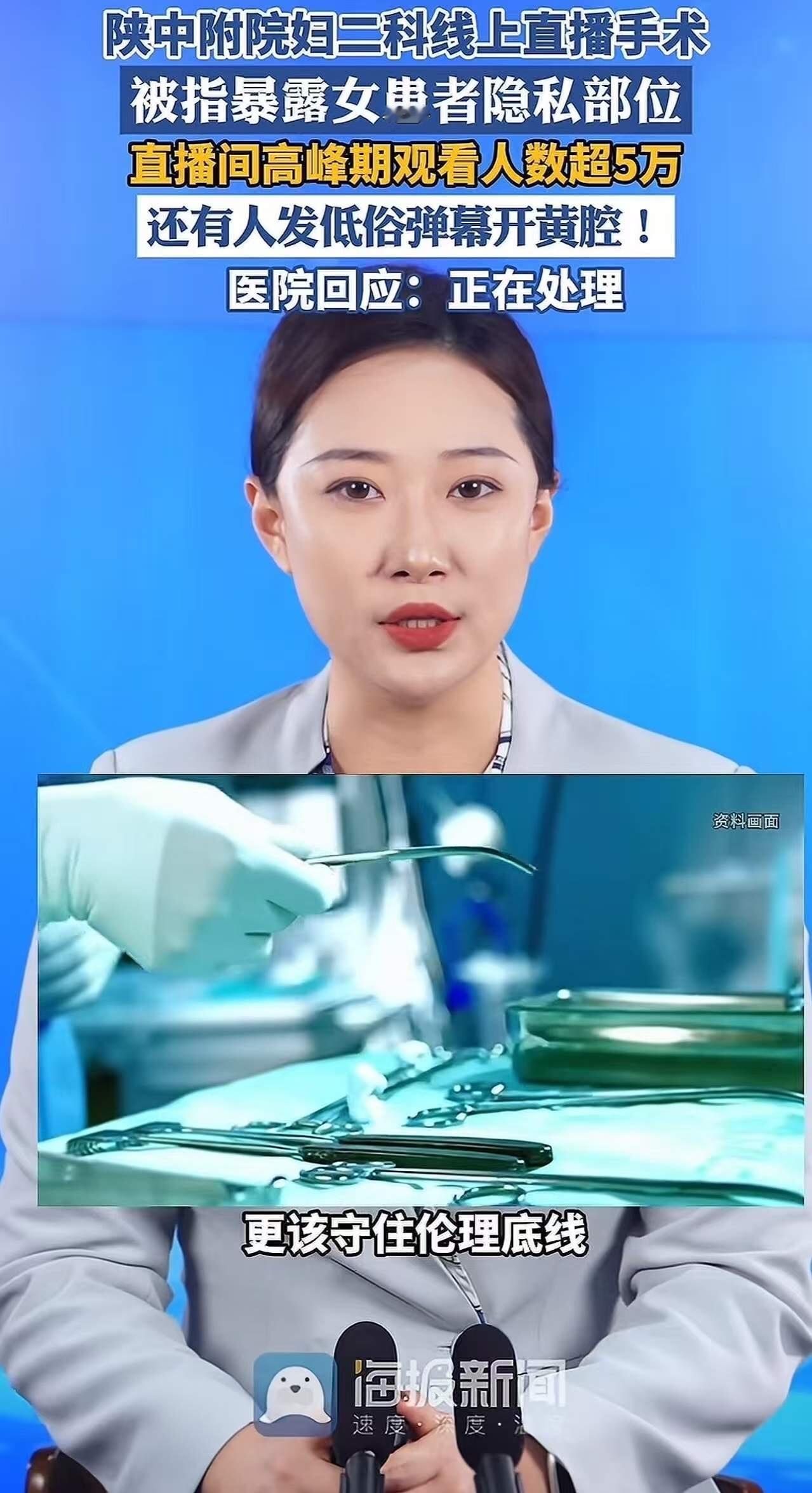 做手术敢直播,还敢不遮盖人家的隐私部位!”多名网友在社交平台曝光,陕西中医药大学附属医院妇二科在网络平台直播做手术,画面中直接出现女性患者隐私部位,多名网友举报后,直播中断。 “现在的医生真是无法无天了。”这句话,或许代表了许多网友的愤怒与失望。最近,一段震惊网络的直播视频再次点燃了公众对于医疗伦理的激烈讨论。在陕西中医药大学附属医院妇二科的直播中,医生们正在进行一场妇科手术,画面中却意外暴露了患者的隐私部位。这一幕,瞬间引发了网友们的愤怒和担忧。 有人质问:“医生怎么能在公众平台直播手术?还不遮挡隐私,简直是对患者的极大不尊重!”更有人直言:“这是在‘娱乐’还是‘职业操守’?医院的专业性和伦理底线呢?”随着举报不断增多,直播很快被中断,但事件的影响远远没有结束。 这次事件暴露出的问题,远不止一个“直播失控”的个案。它折射出的是在某些医疗机构中,一部分人对于职业伦理和患者隐私的漠视。我们不得不问:为什么会出现如此“胆大包天”的行为? 其实,背后隐藏的是一个令人担忧的趋势——部分医务人员为了追求“曝光率”和“流量”,逐渐突破底线,将患者的隐私当成“娱乐素材”。而一些医院管理的松懈,也让这种行为有了可乘之机。更令人担忧的是,这样的事件一旦发生,伤害的不仅仅是患者的隐私,更是整个社会对医疗行业的信任。 我们知道,医生职业本应是“仁心仁术”,以患者的利益为先。医德的底线,是保护患者的隐私,尊重每一个生命的尊严。但在今天这个“快节奏、流量至上”的网络时代,一些人似乎把“曝光”和“热度”放在了第一位,忽略了职业的初心。 公众的反应也非常强烈。有人说:这是对患者的极大不尊重,是对医者职业操守的亵渎;有人则呼吁:加强监管,明令禁止医务人员在未经患者同意的情况下进行直播,尤其是涉及隐私的内容。更有人建议:建立更严格的行业规范和惩戒机制,让那些“以流量为重”的行为付出应有的代价。 这次事件提醒我们,医疗行业需要一场深刻的自我反思。尊重患者,是医者的底线;保护隐私,是职业的责任。公众的信任,不是一朝一夕建立的,而是每一位医务人员用心守护的结果。我们期待,未来的医疗环境,可以回归本源,不被“流量”所污染。 在这个信息爆炸、价值观多元的时代,让我们共同呼吁:医疗行业的每一份工作,都应以“守护生命、尊重隐私”为核心,让医德重新成为行业的标杆。只有这样,才能真正赢得患者的心,也才能让我们的社会变得更加温暖和有序。男医生隐私争议 妇科手术 医疗隐私 宫腔镜医生 女性私密手术 内窥镜手术 手术直播摄像头
