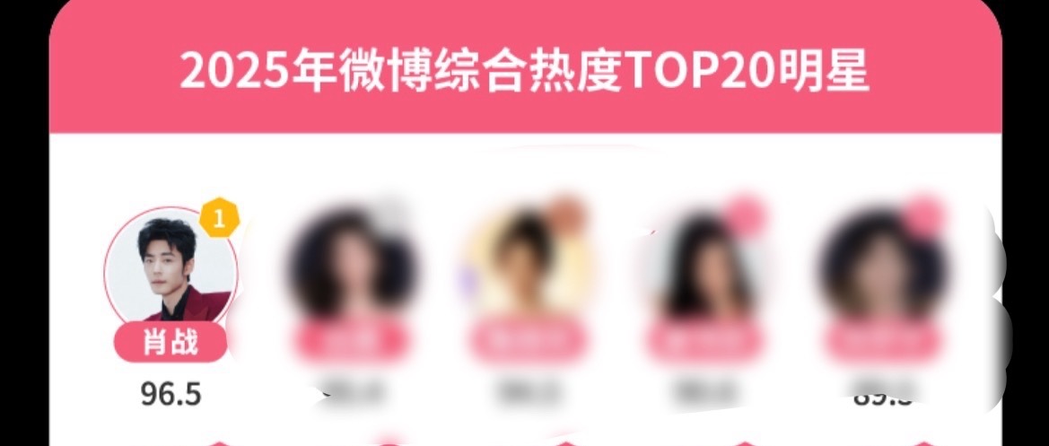 肖战蝉联年度微博综合热度明星第一肖战登顶2025年度微博综合热度明星第一🏆蝉联两年综合热度第一,含金量max微博娱乐白皮书